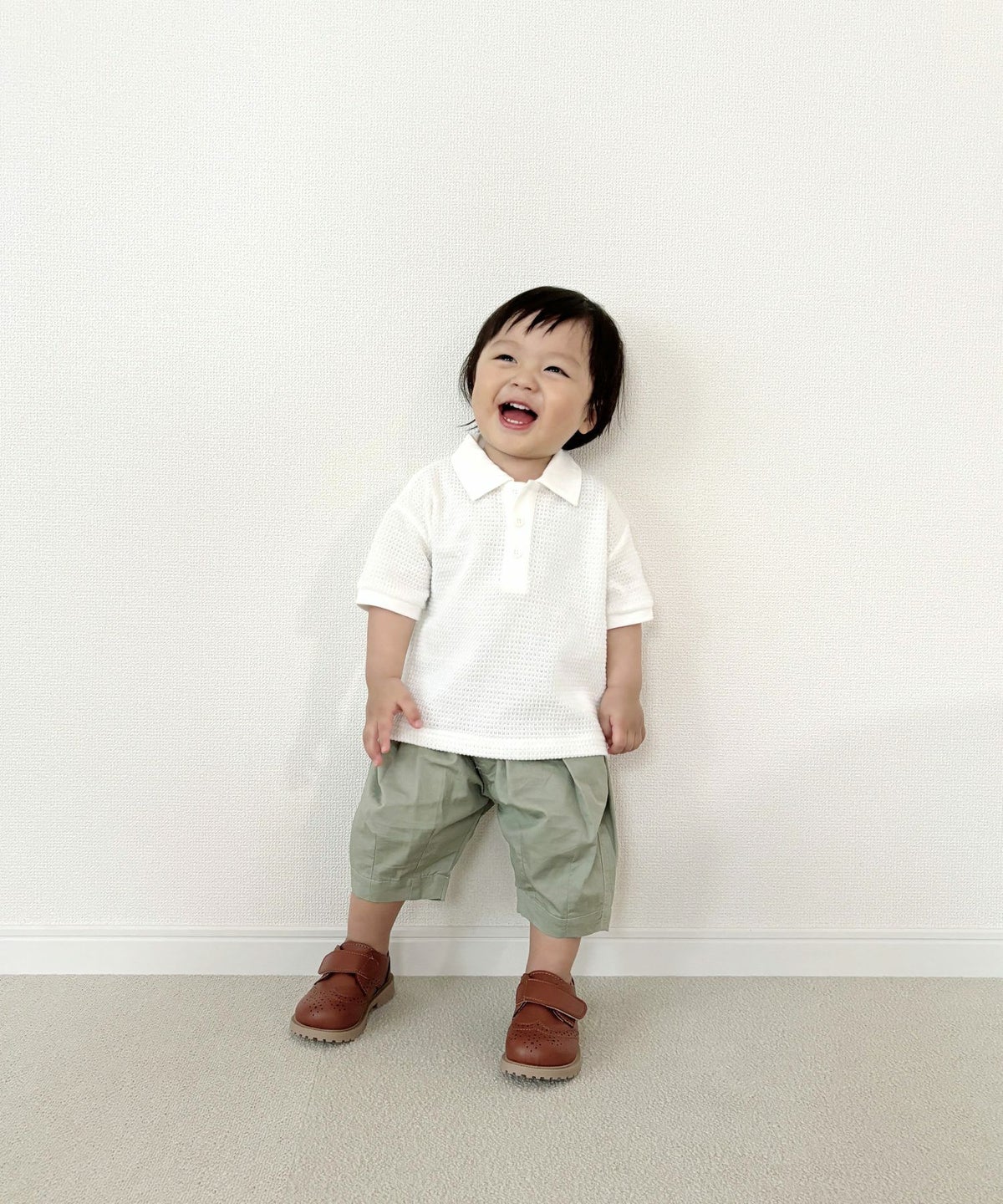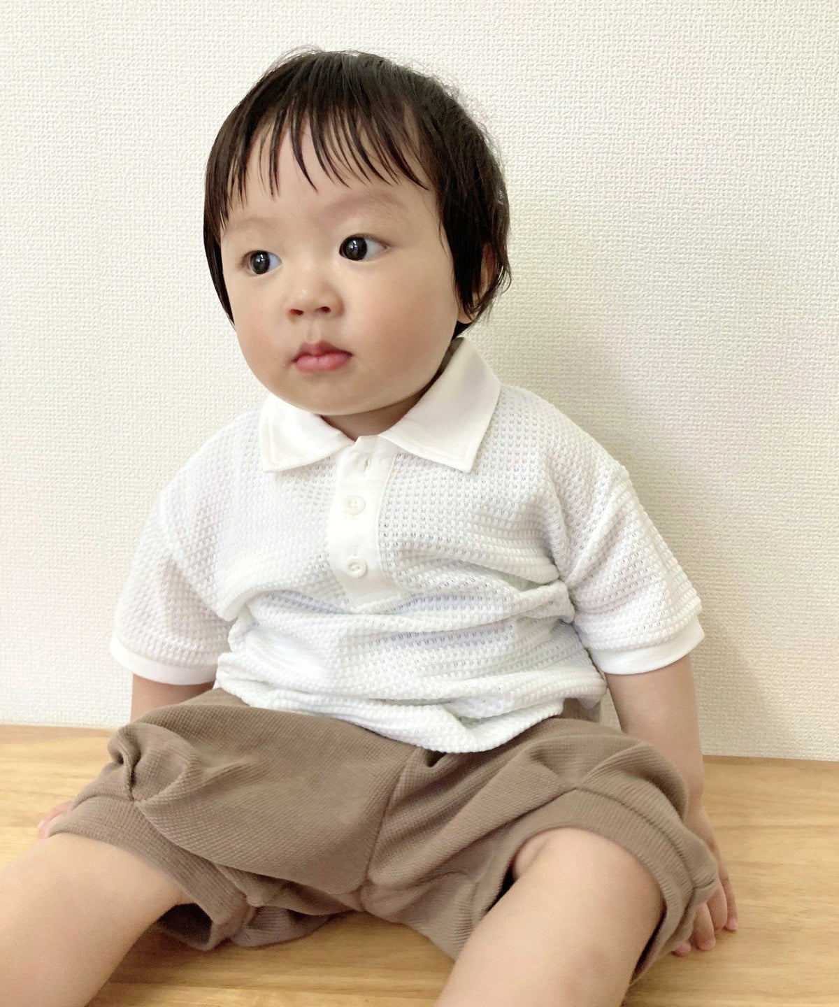 【セール】ワッフル半袖ポロシャツ■90~140cm