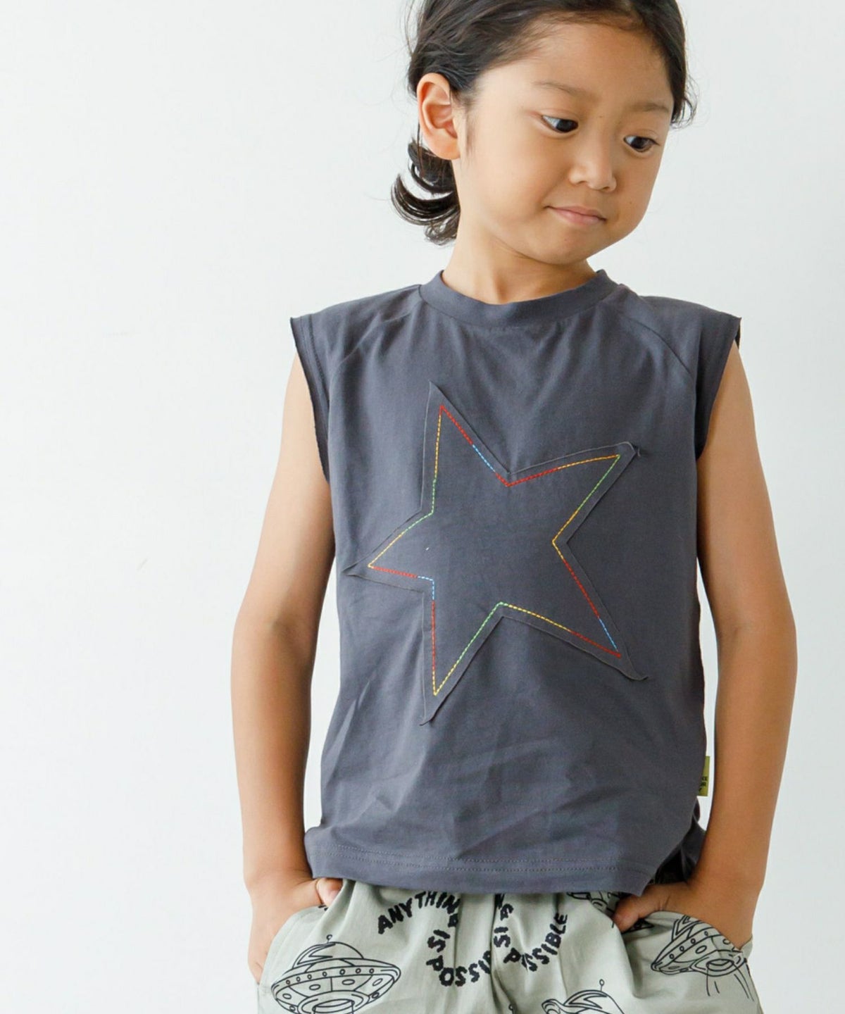 【セール】星柄刺繍ラグランスリーブレスTシャツ■80~140cm