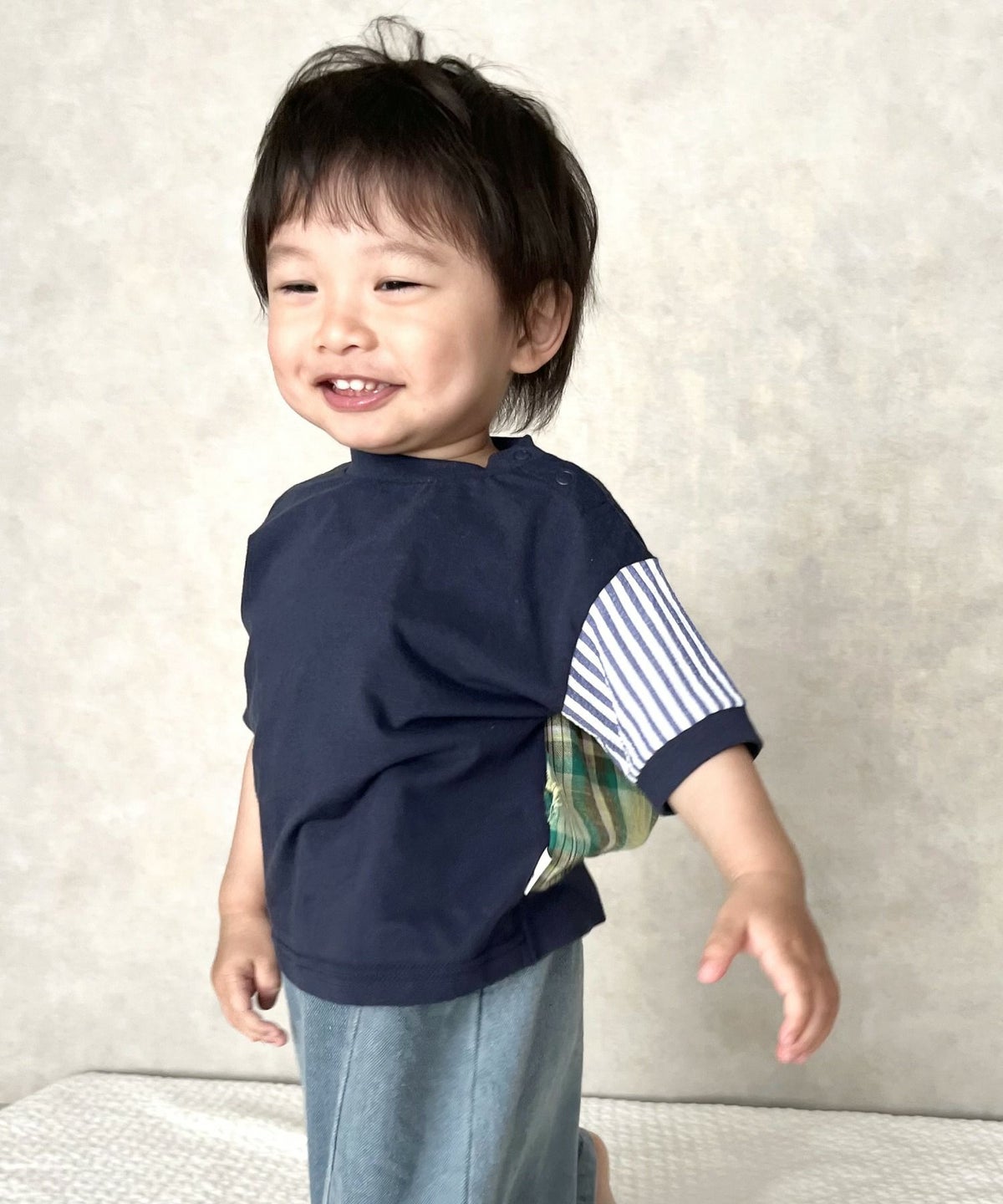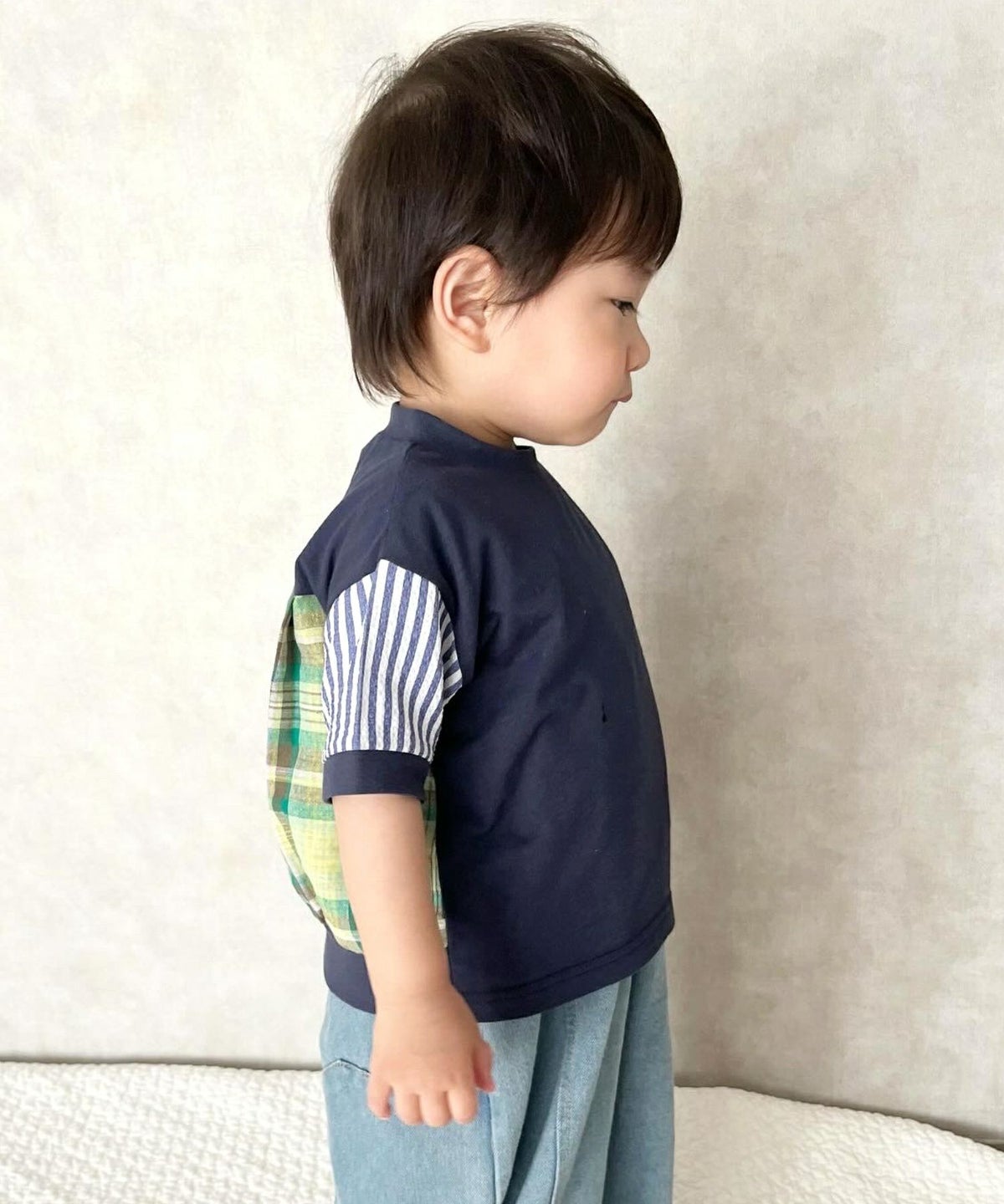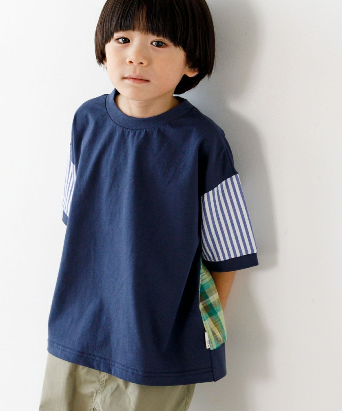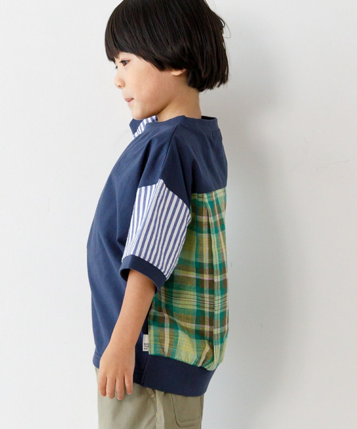 【セール】異素材切替半袖Tシャツ■80~140cm