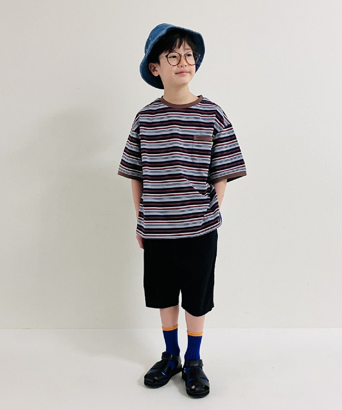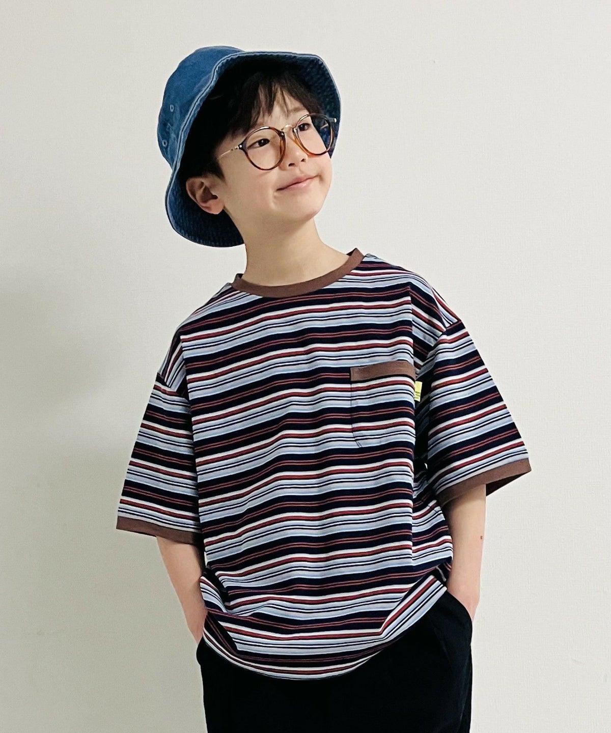 【セール】ポケット付きマルチボーダー半袖Tシャツ■150.160cm