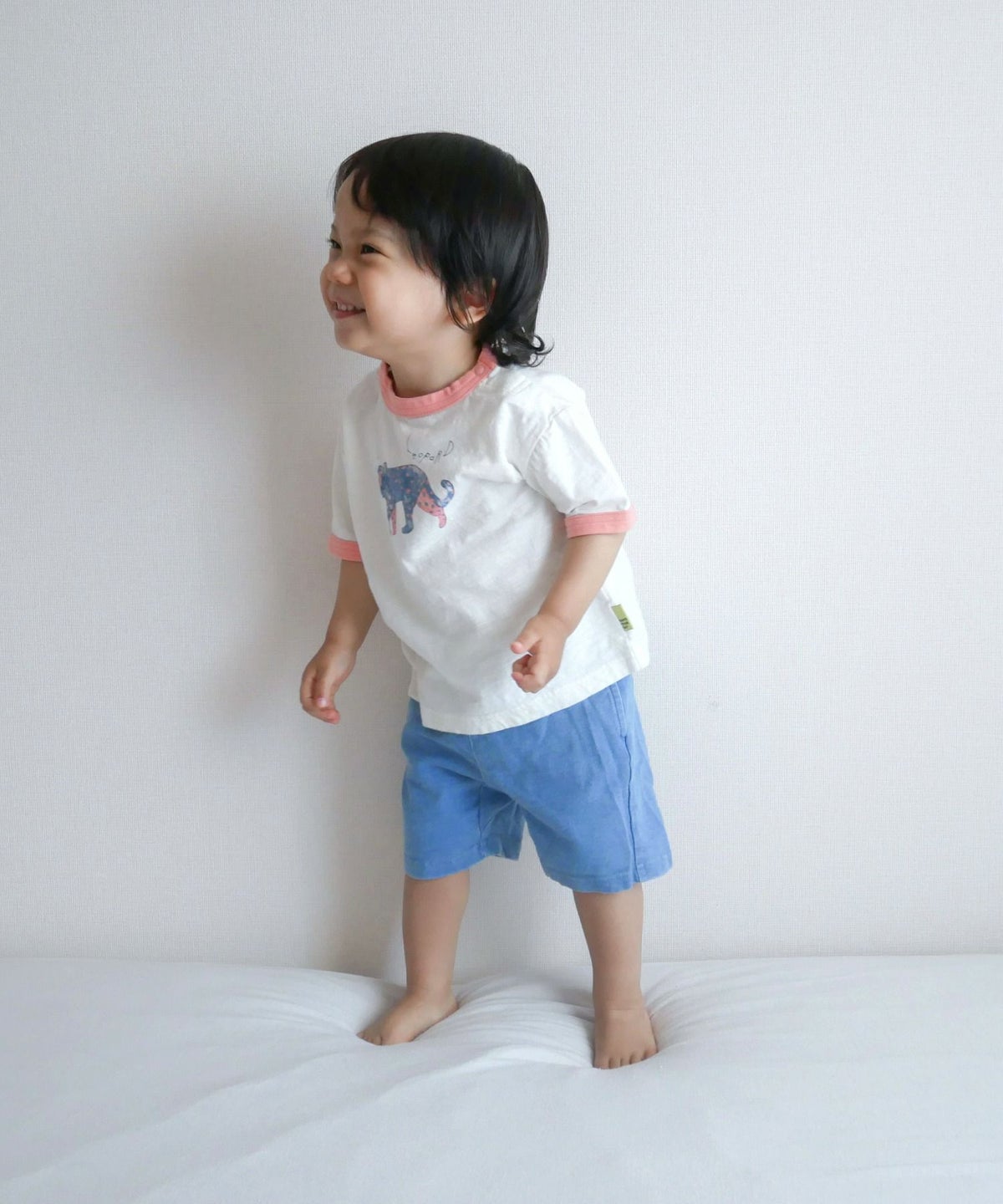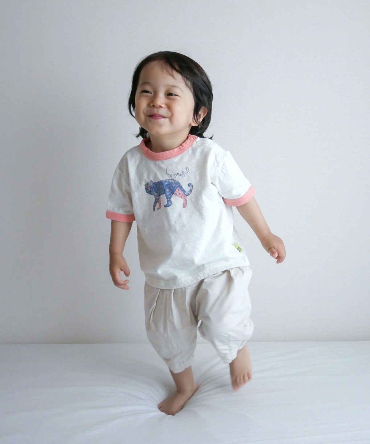 【セール】アートなレオパード柄半袖リンガーTシャツ■80~140cm