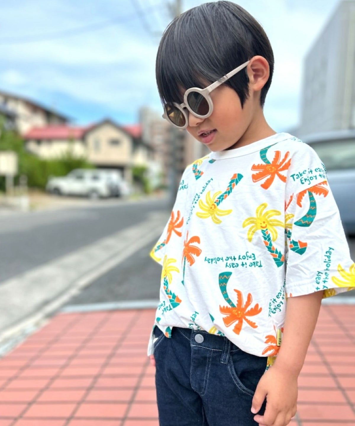 【セール】オアシスヤシ総柄半袖Tシャツ■80~140cm