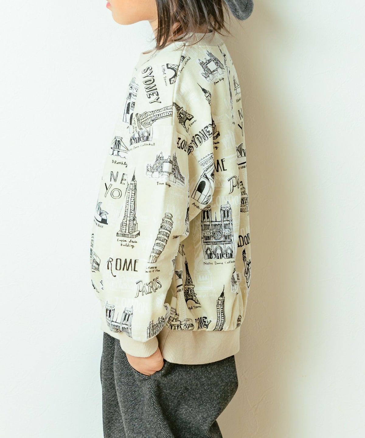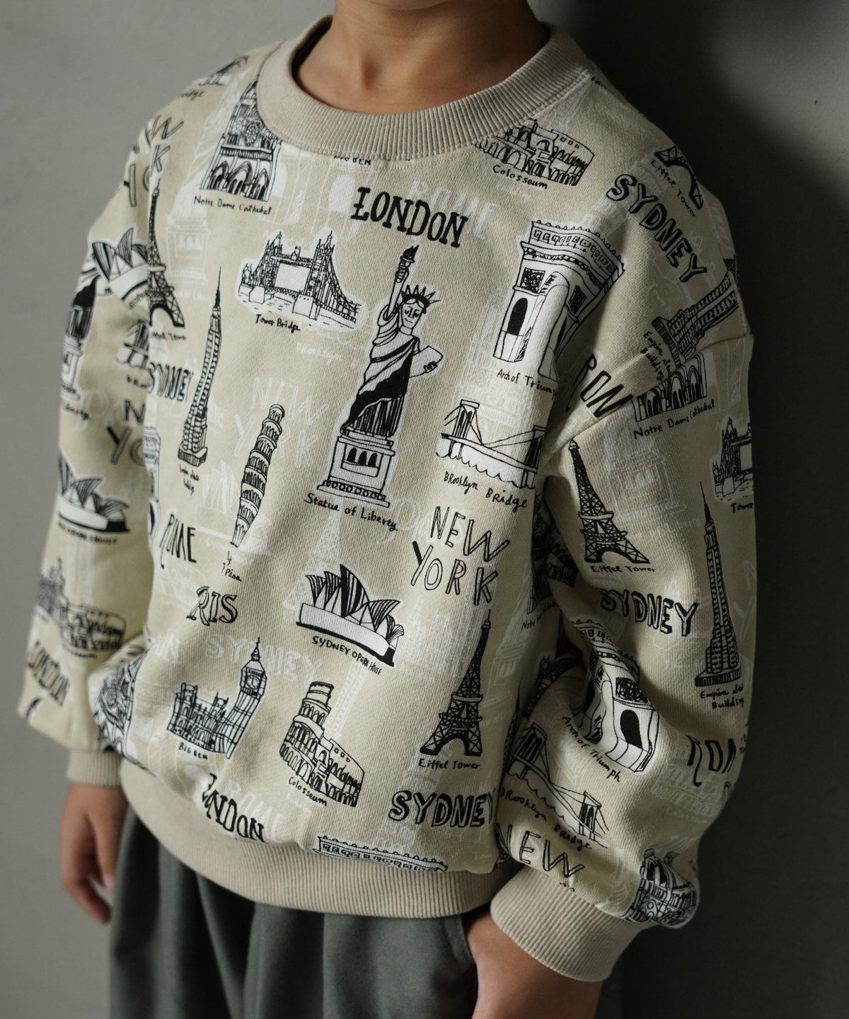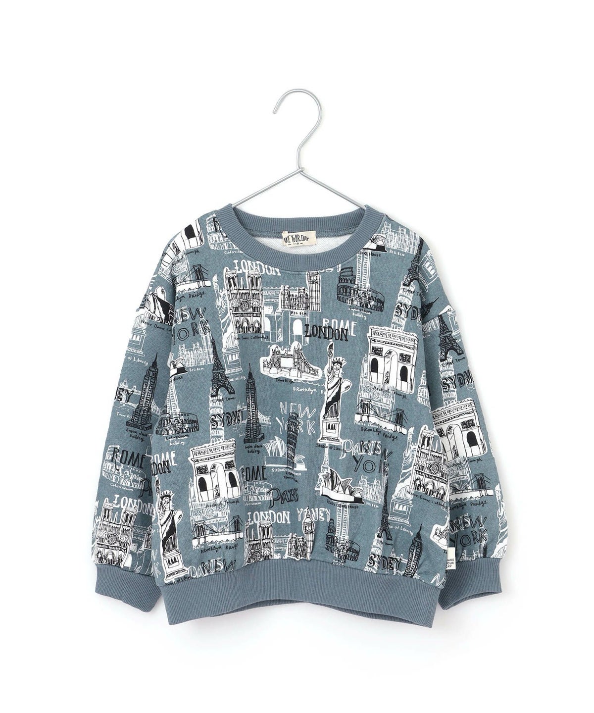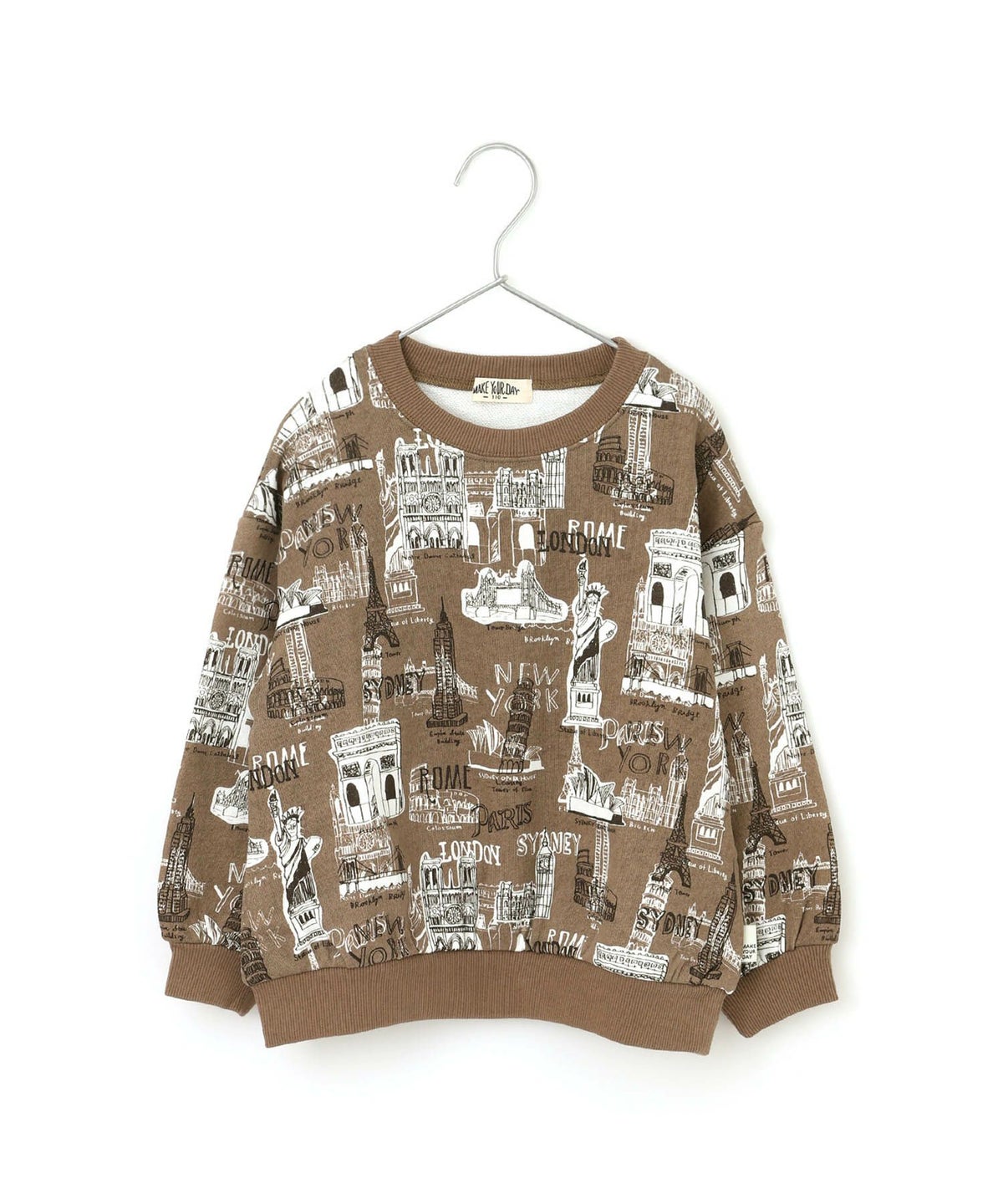 【セール】すごい建物総柄裏毛トレーナー■80~140cm