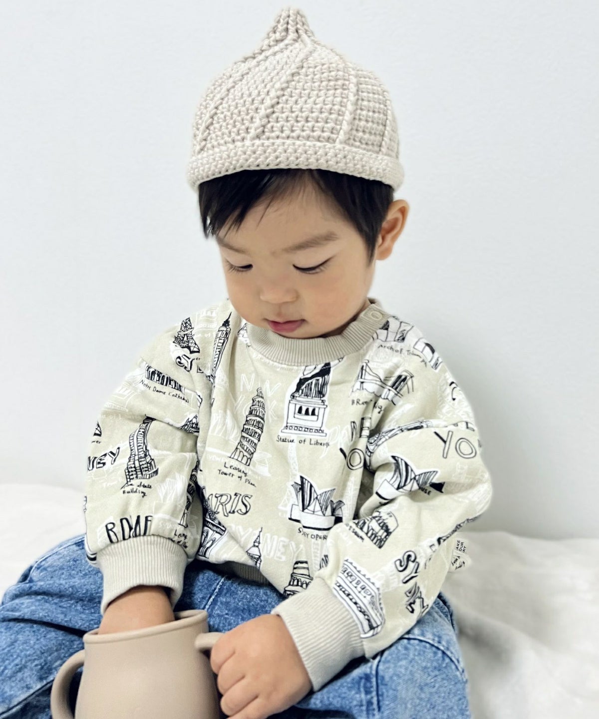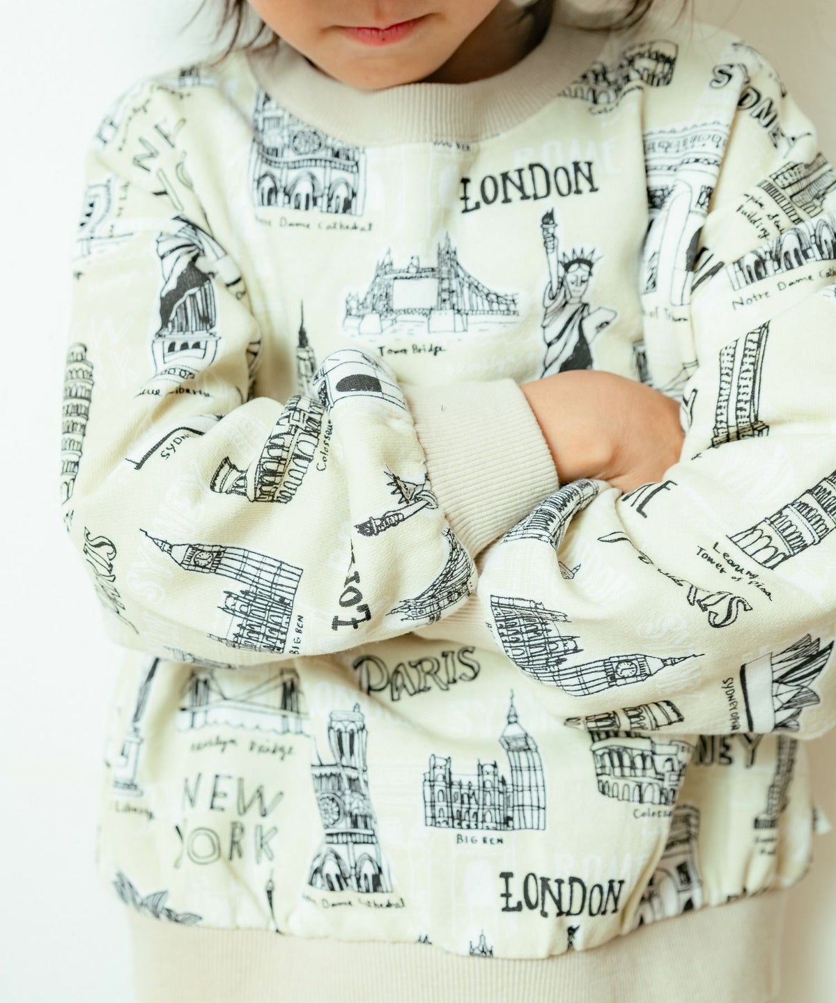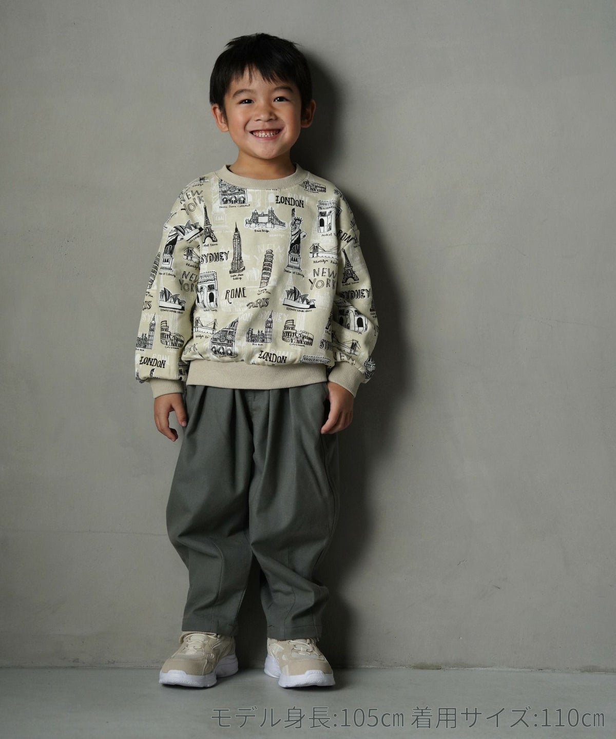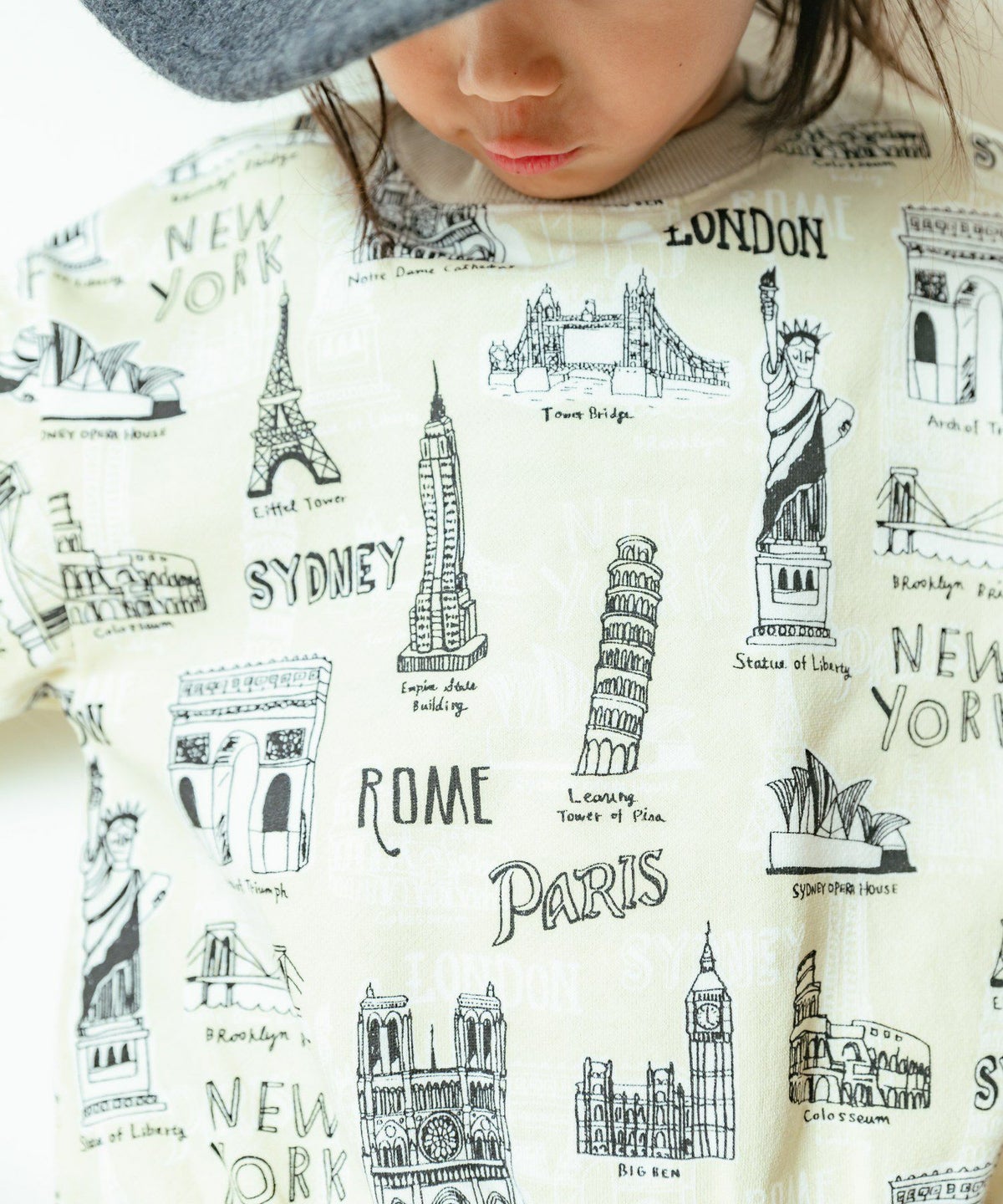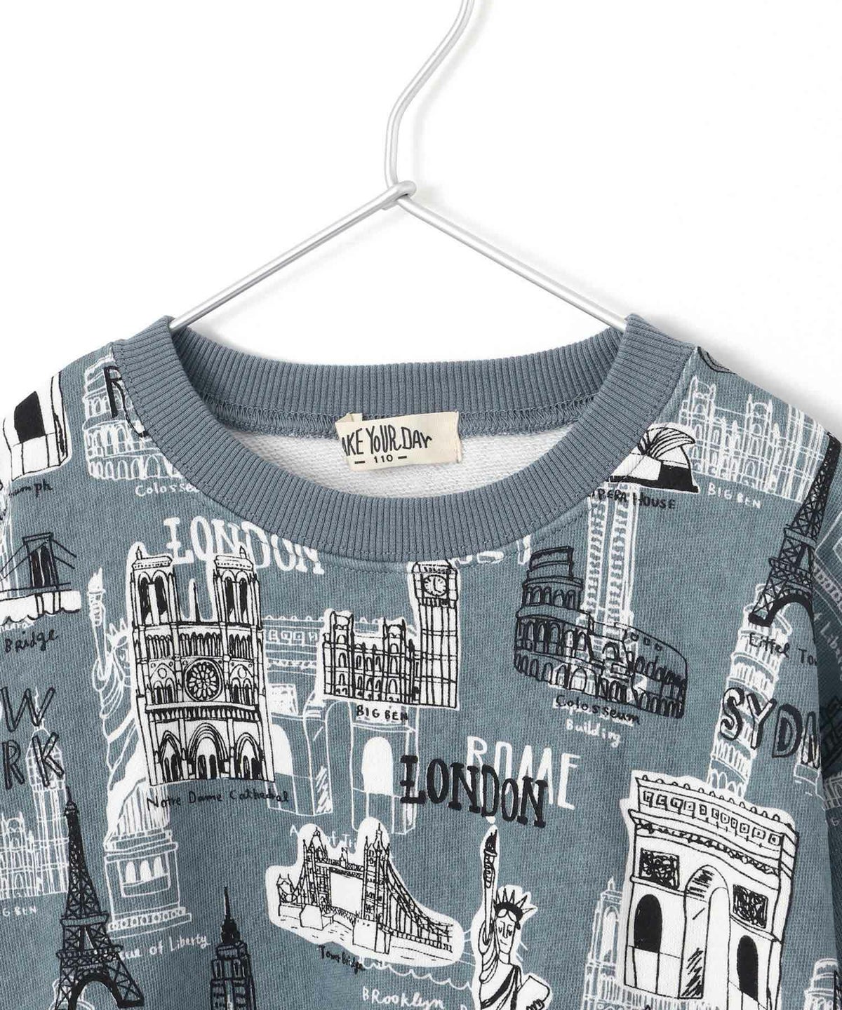 【セール】すごい建物総柄裏毛トレーナー■80~140cm