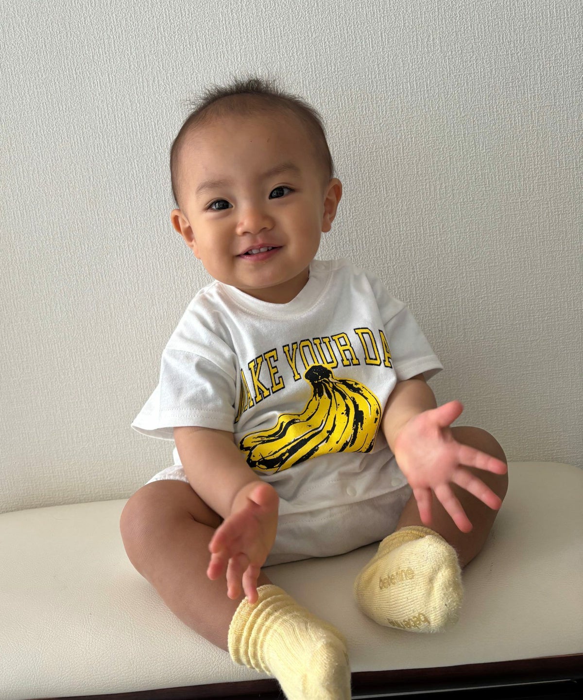 【セール】バナナとロゴ半袖ロンパス