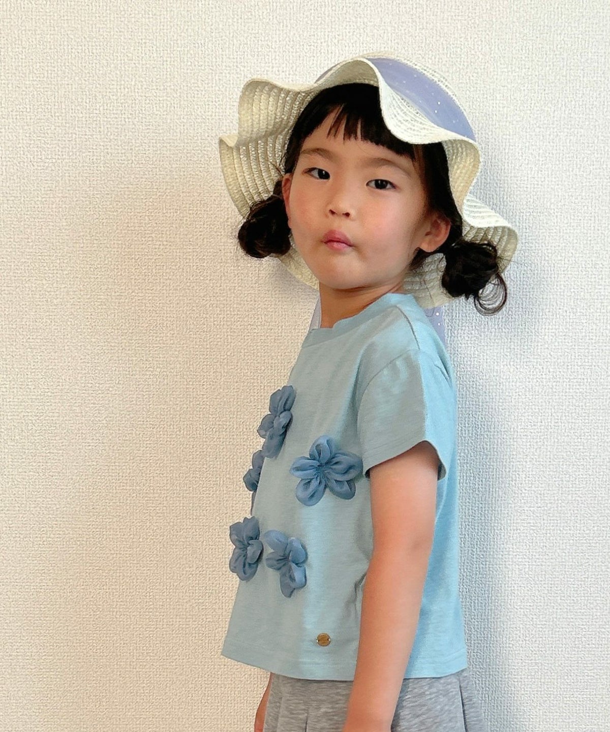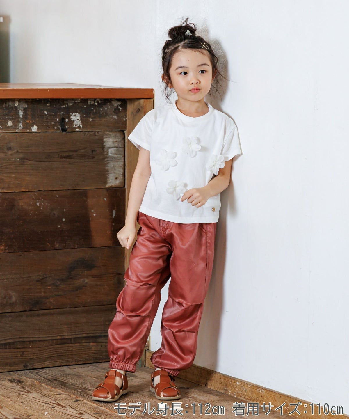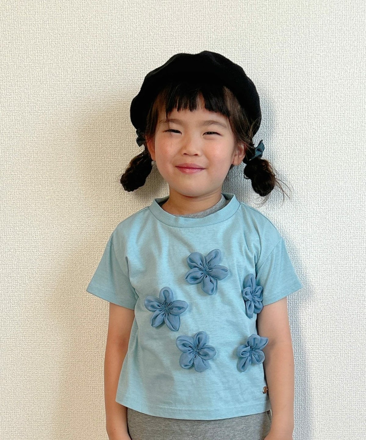 【セール】フラワーモチーフ半袖Tシャツ■80~140cm