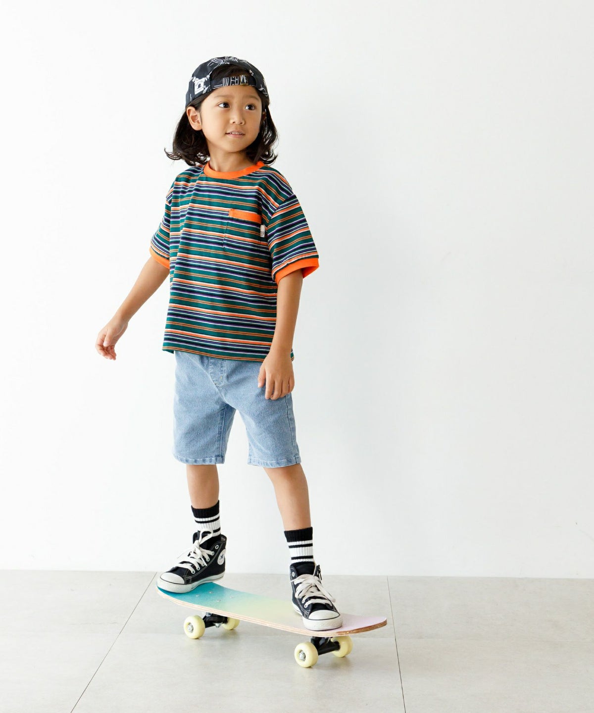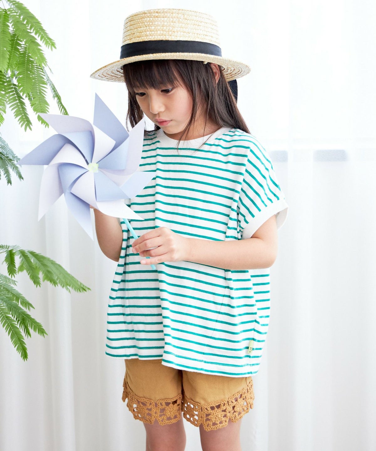 【セール】5.5分丈マルチストライプイージーパンツ■90~140cm