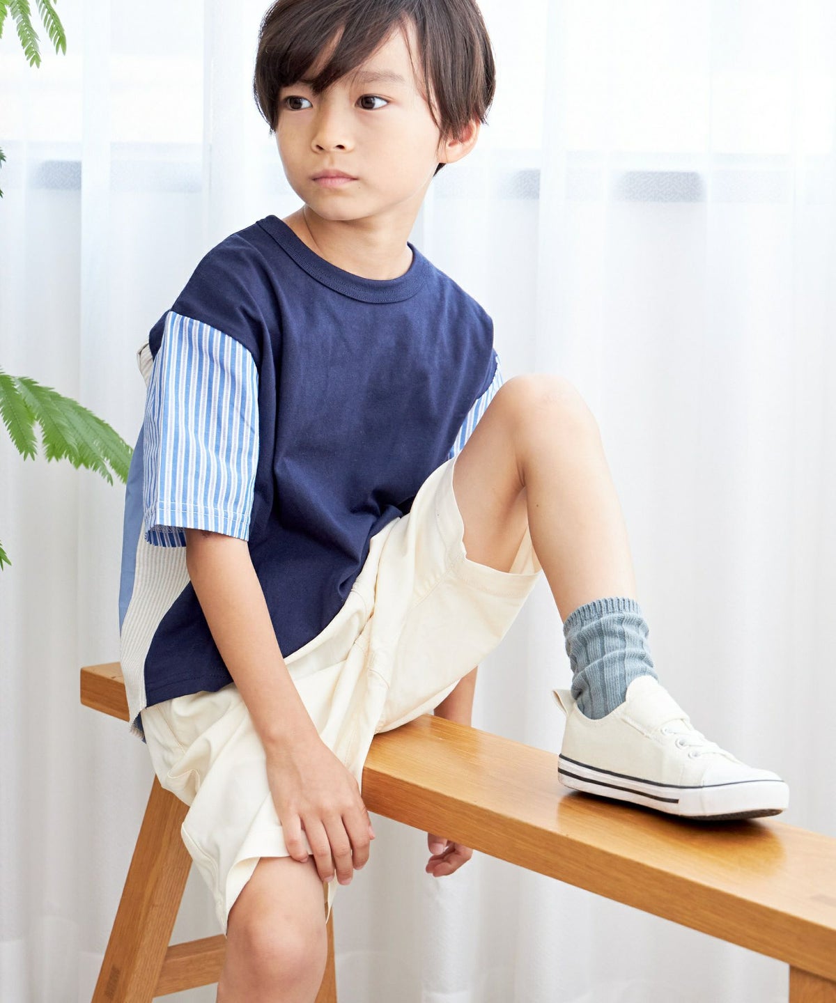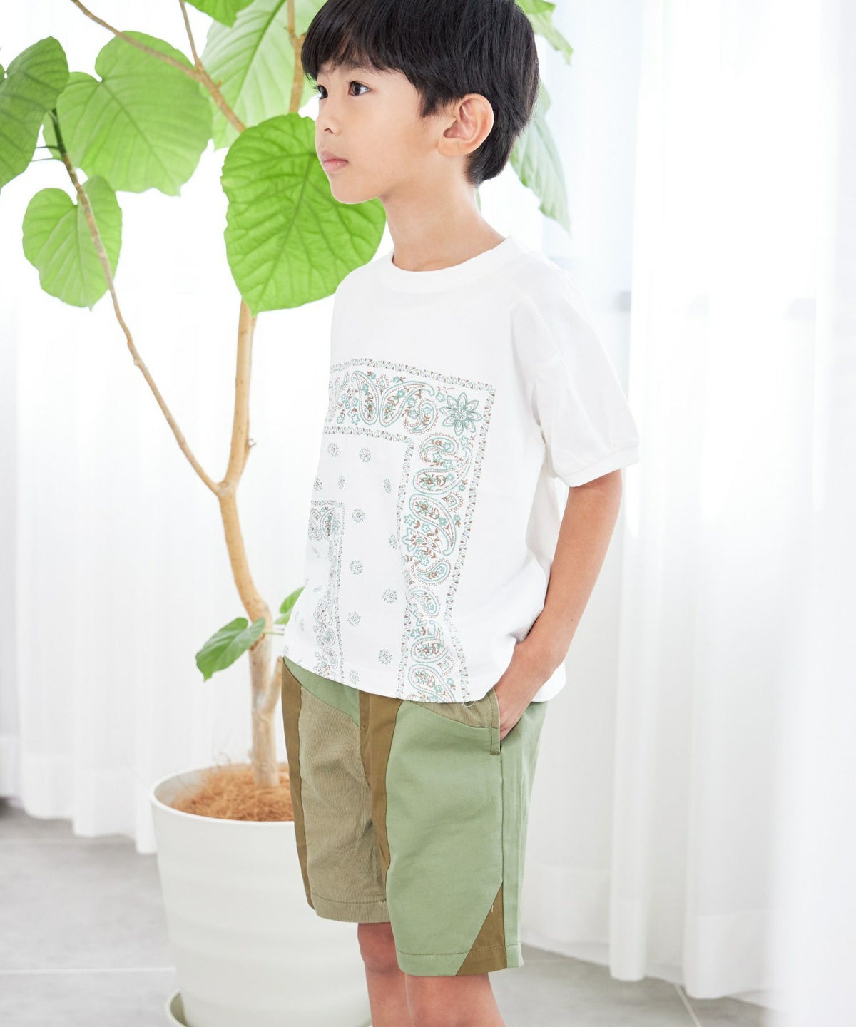 【セール】異素材切替5分丈パンツ■90~140cm