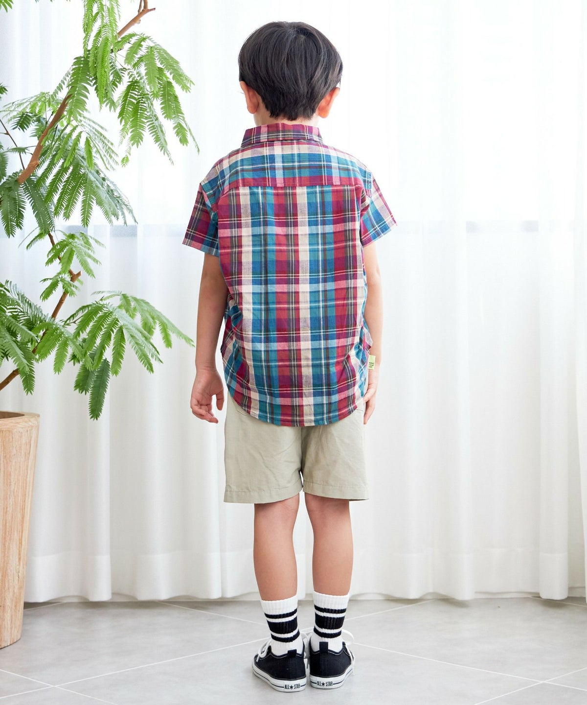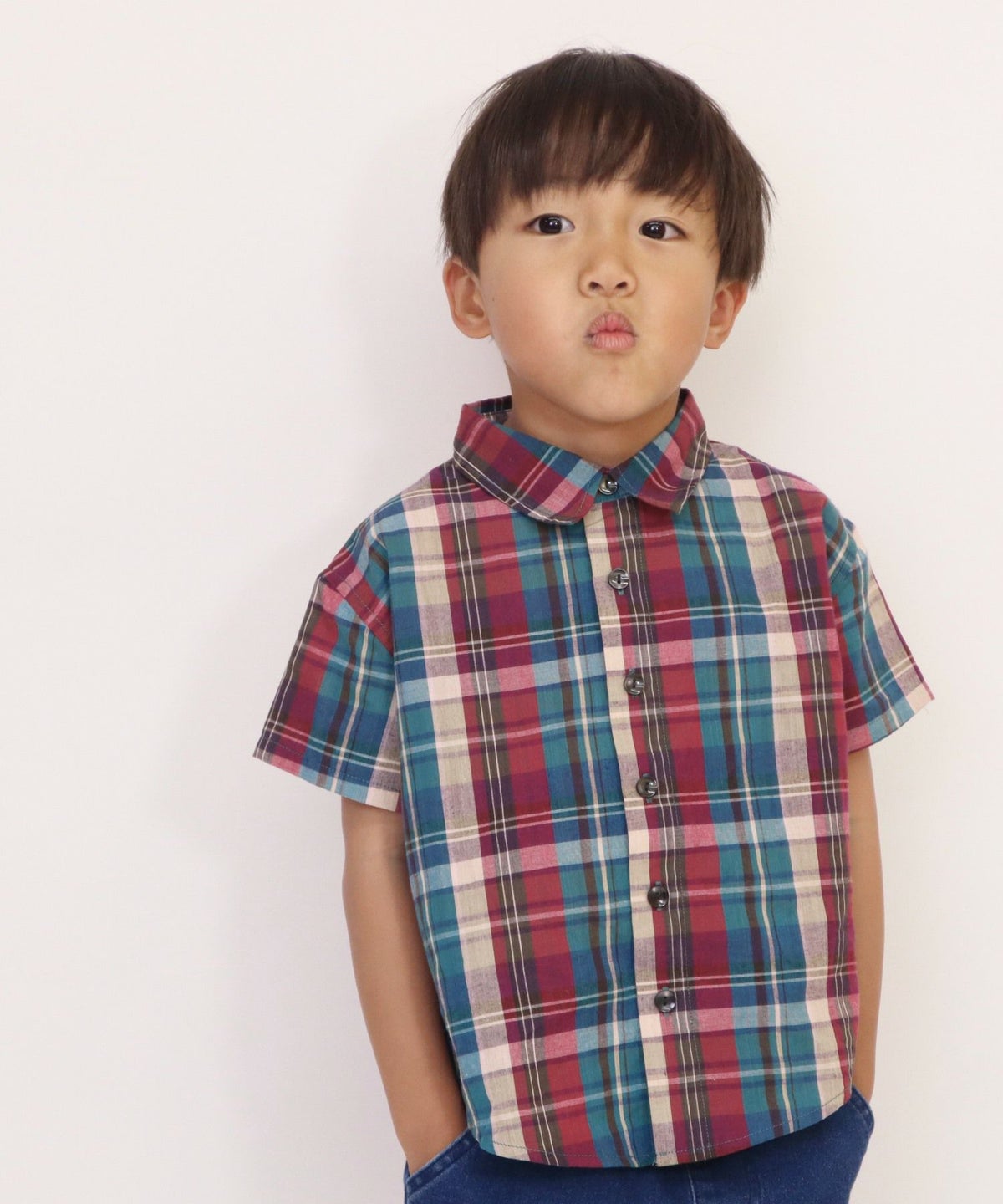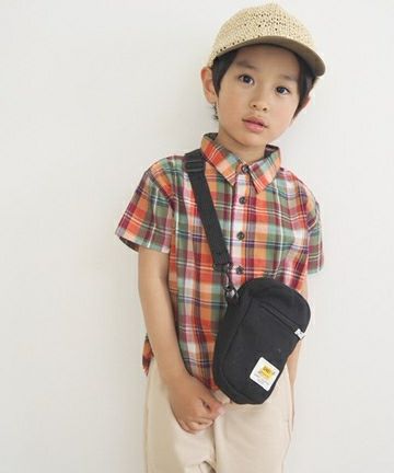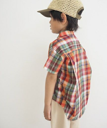 【セール】先染めチェック半袖シャツ■90~140cm