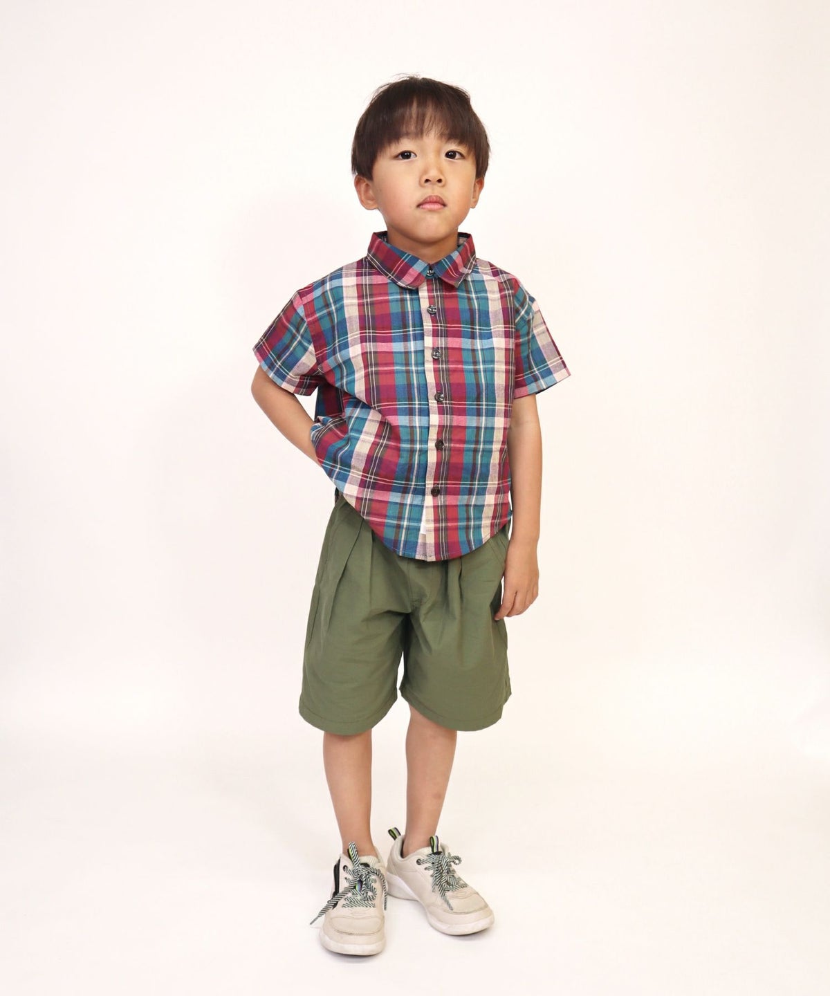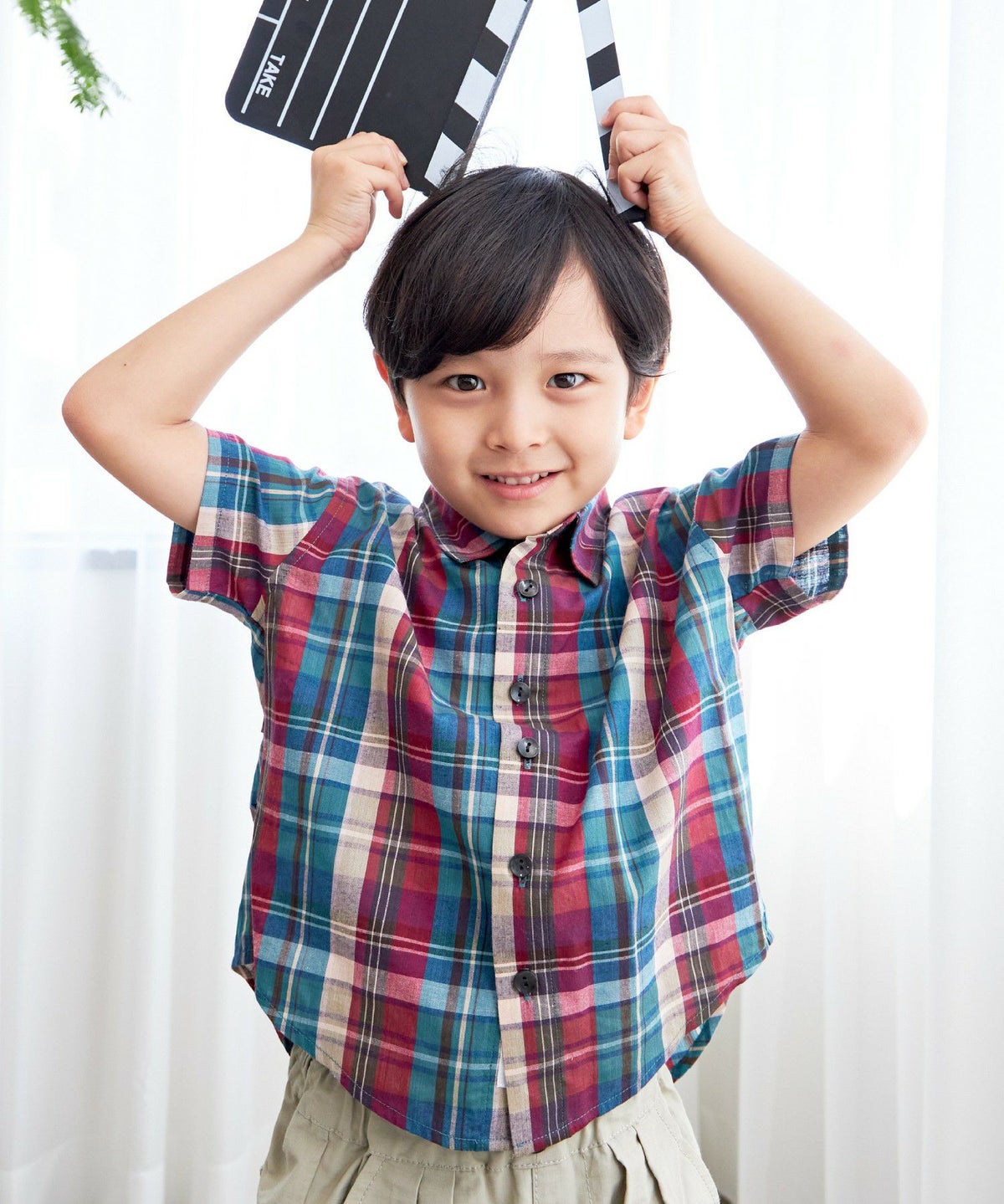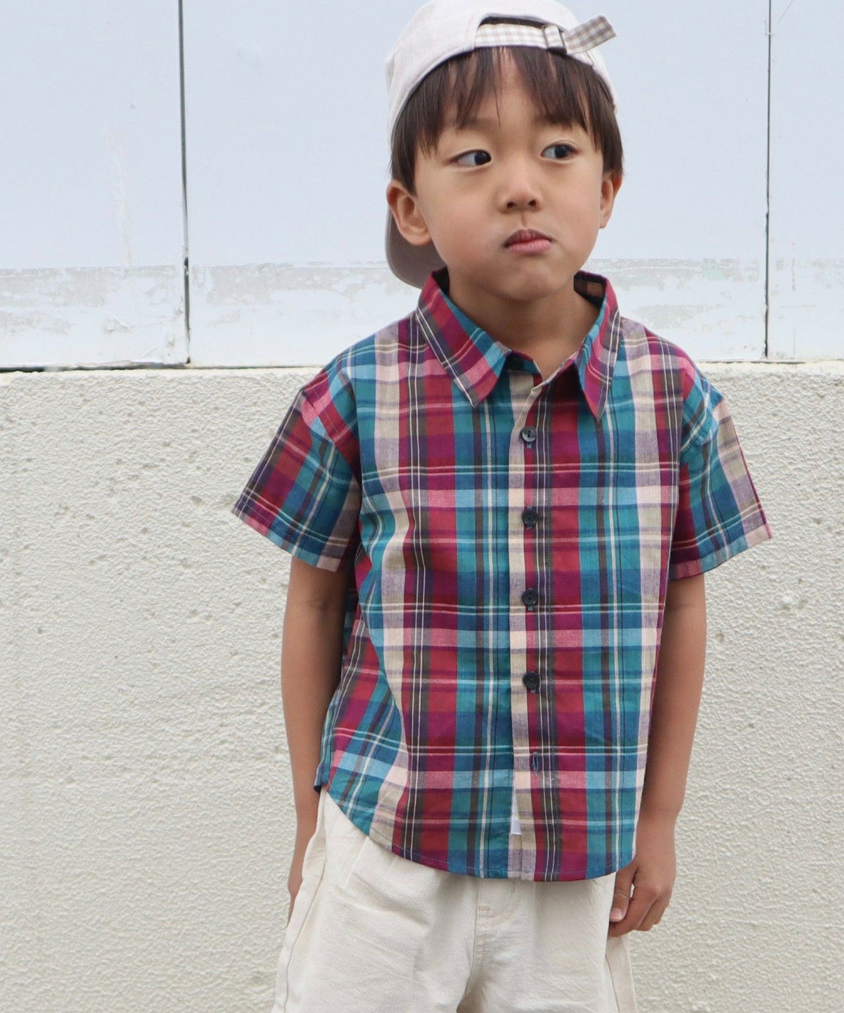【セール】先染めチェック半袖シャツ■90~140cm