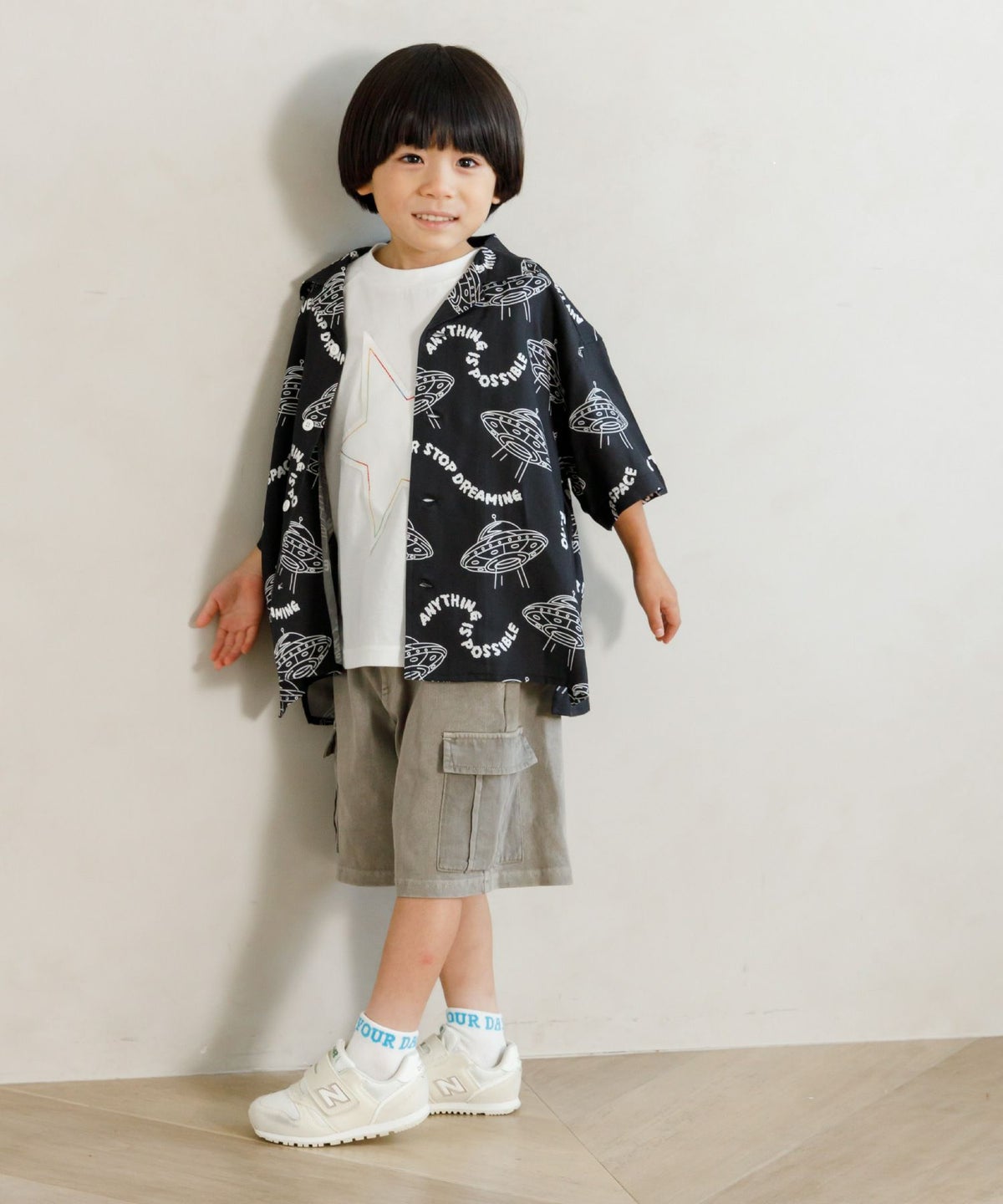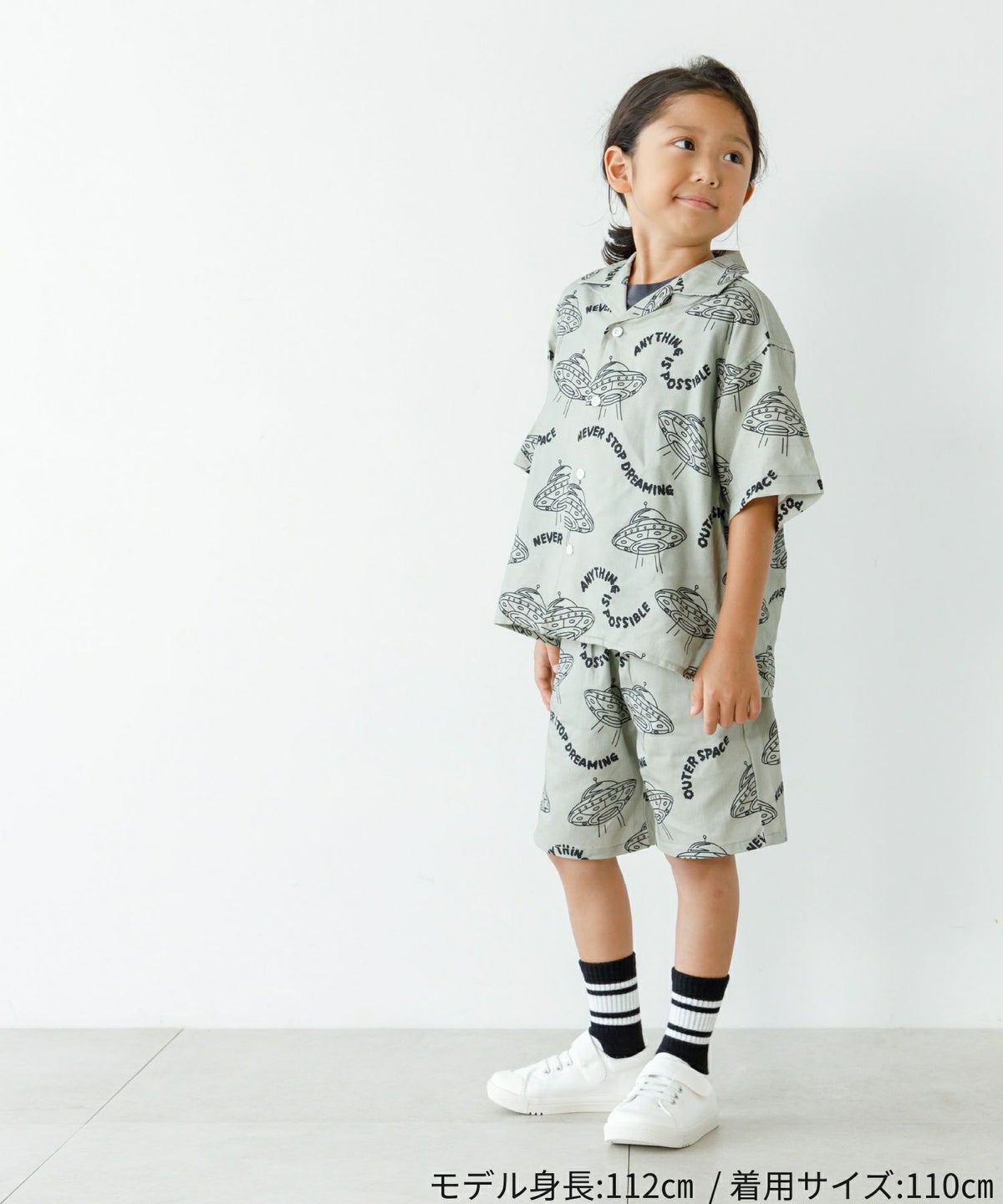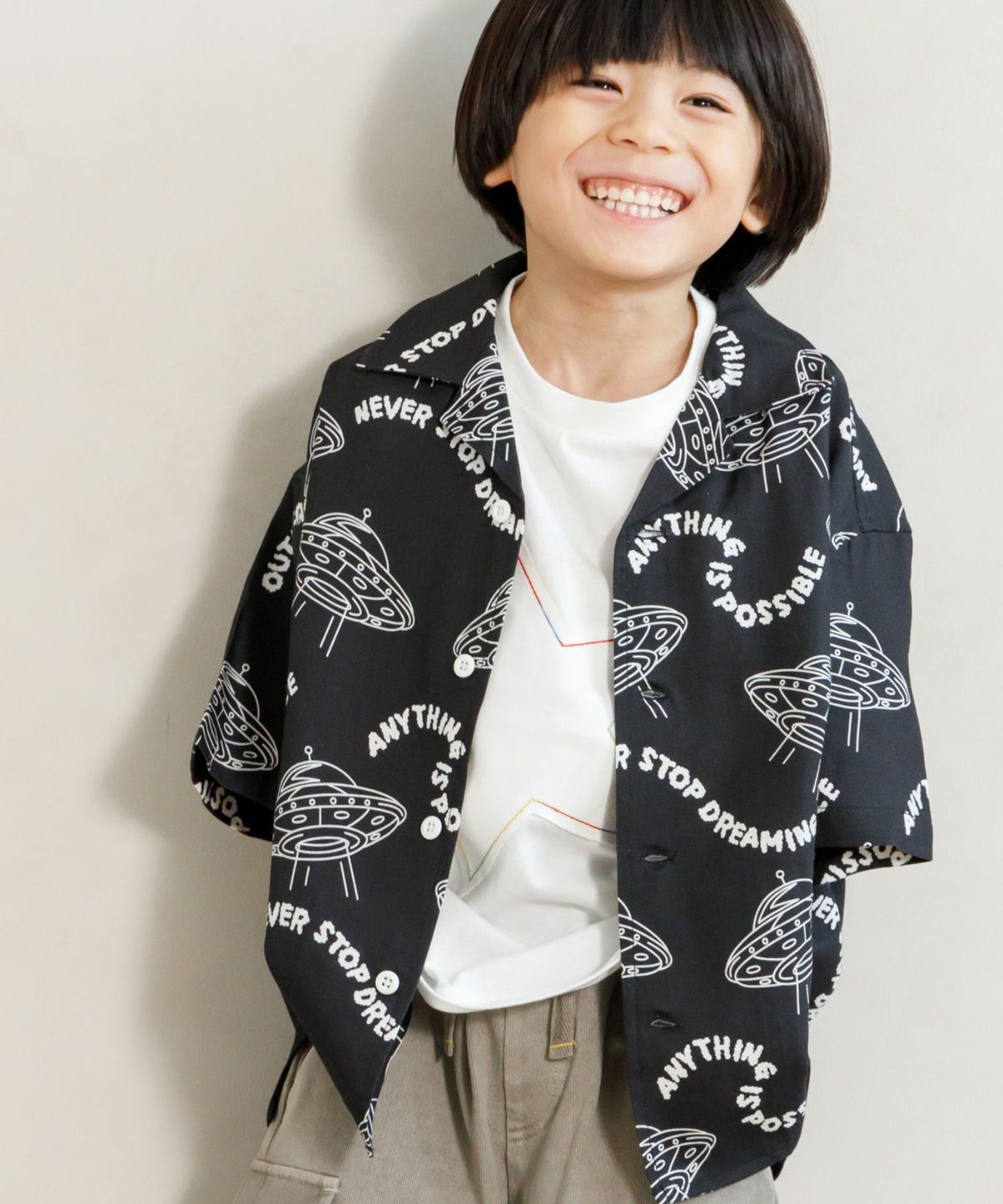 【セール】セットアップできるUFO総柄半袖シャツ■90~140cm