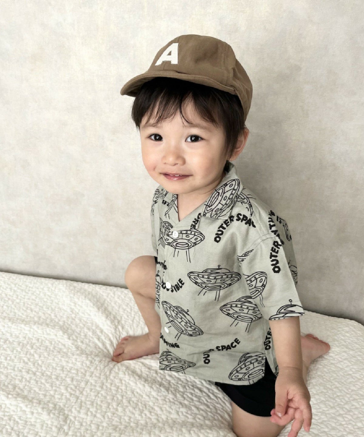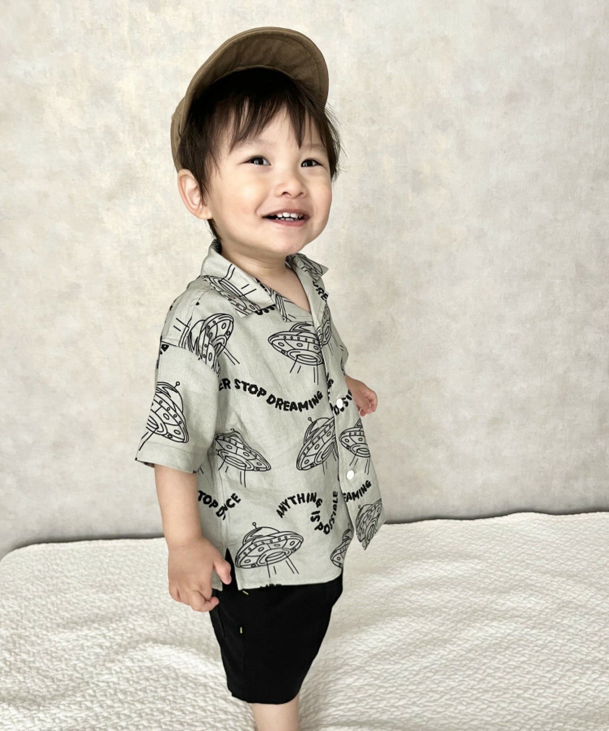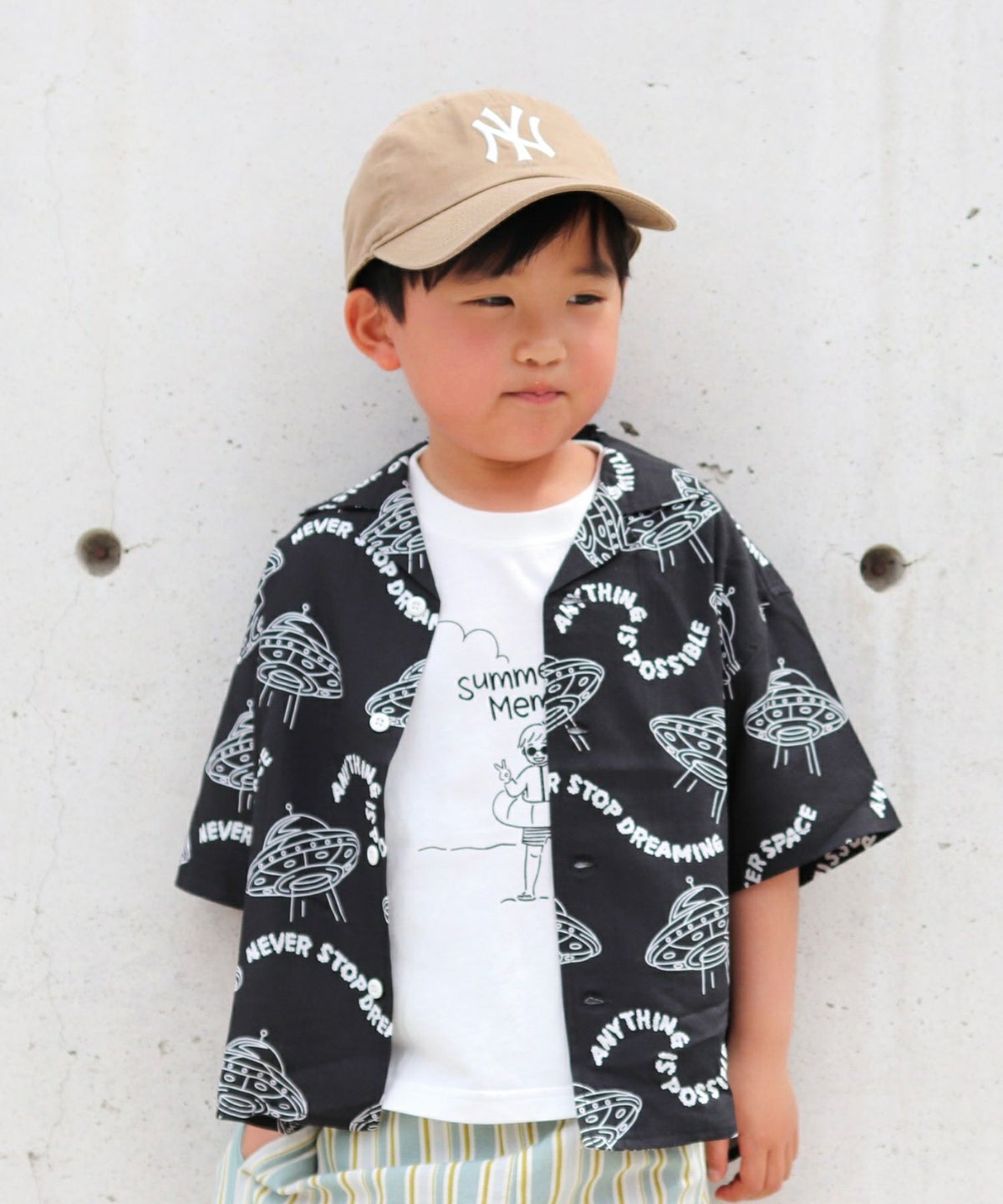 【セール】セットアップできるUFO総柄半袖シャツ■90~140cm