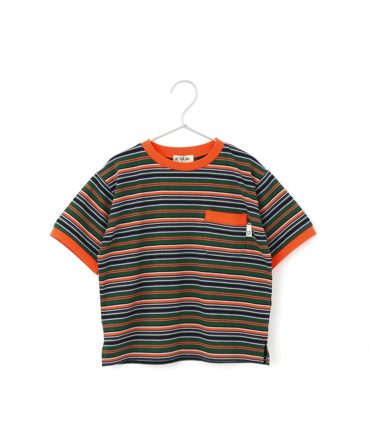 【セール】ポケット付きマルチボーダー半袖Tシャツ■90~140cm