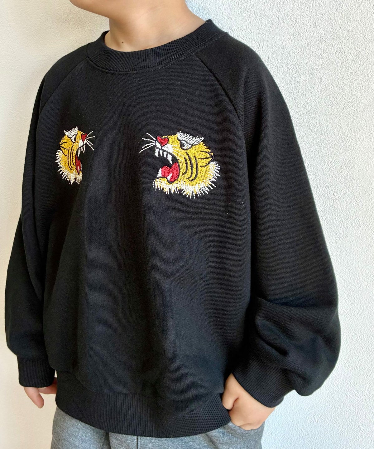 トラ刺繍ファミリー裏毛トレーナー■80~140cm