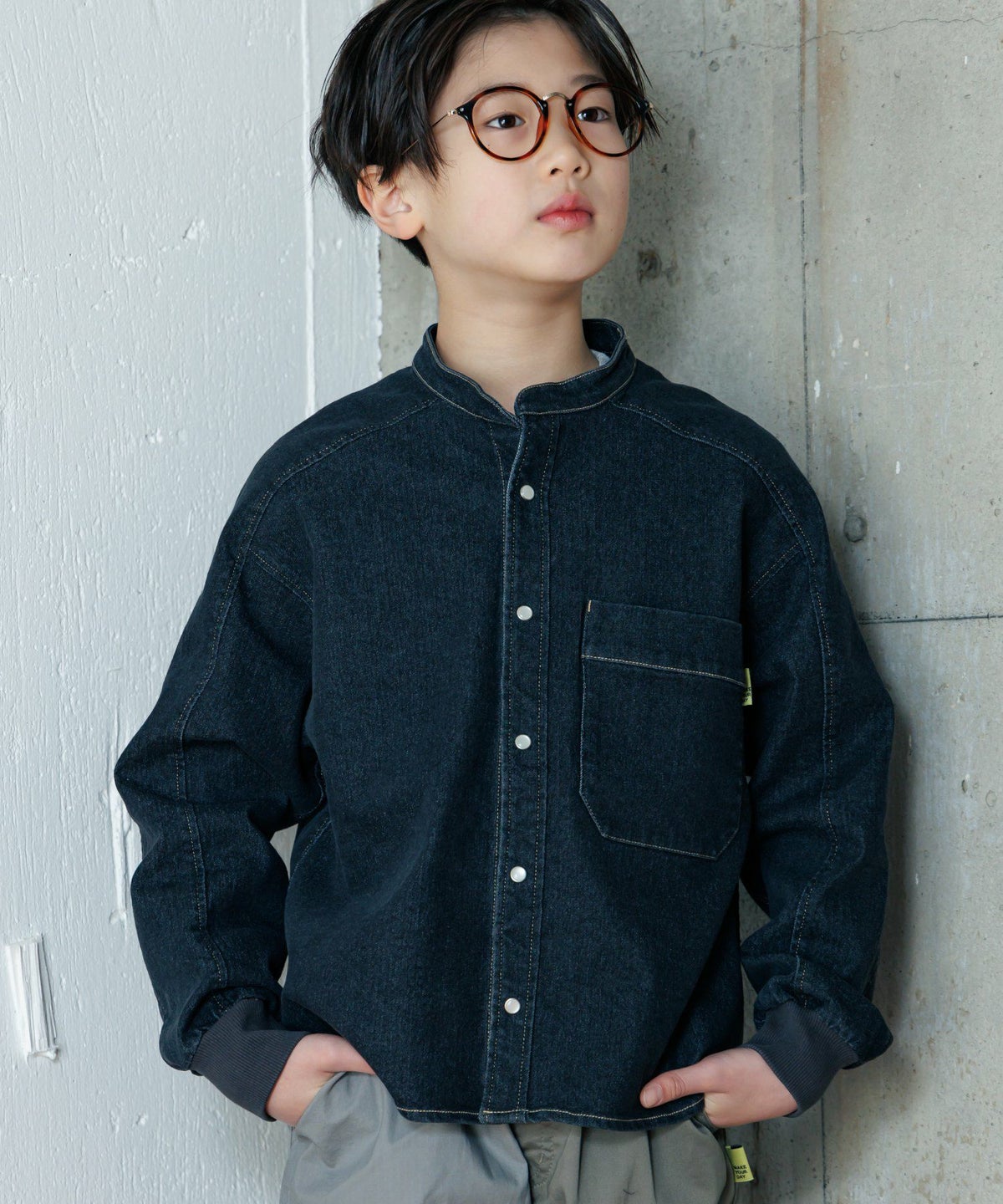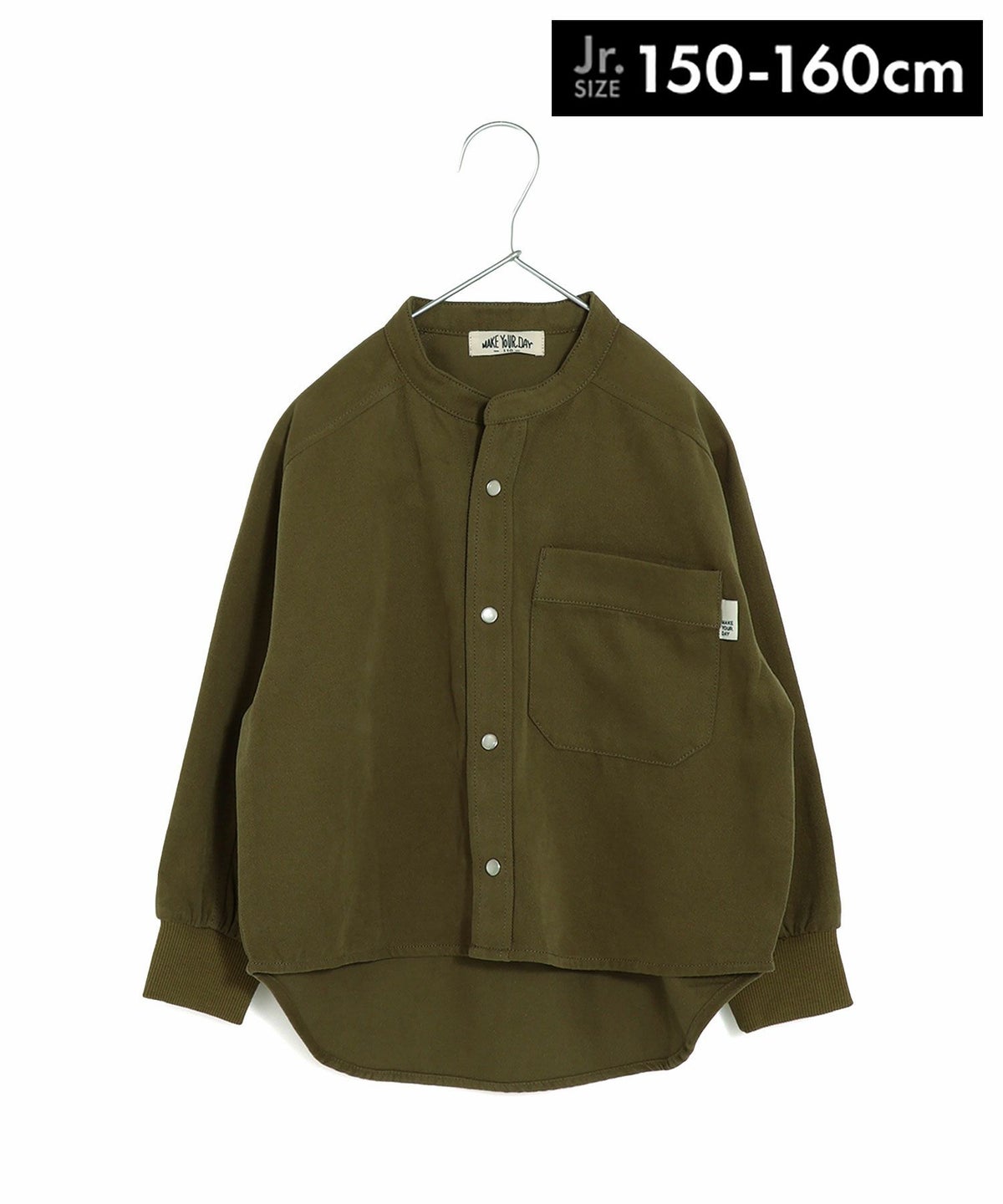 【セール】無地バンドカラー長袖シャツ■150.160cm