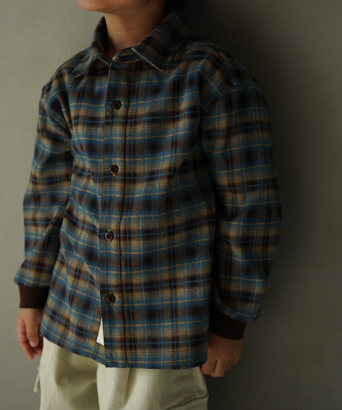 【セール】無地とチェックのベーシックシャツ■80~140cm