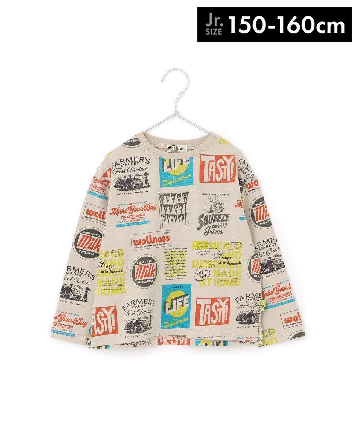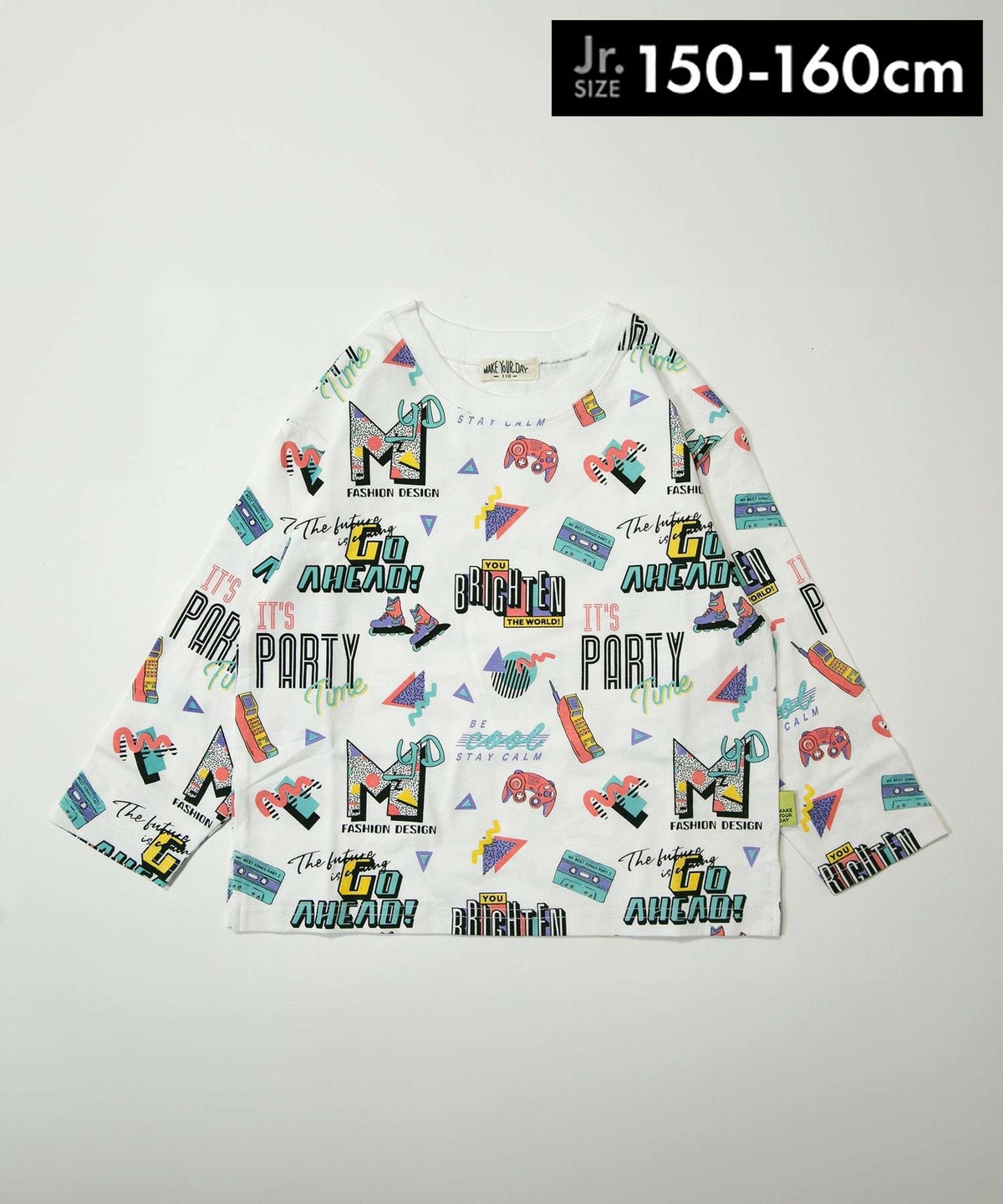 【セール】レトロステッカー総柄長袖Tシャツ■150.160cm