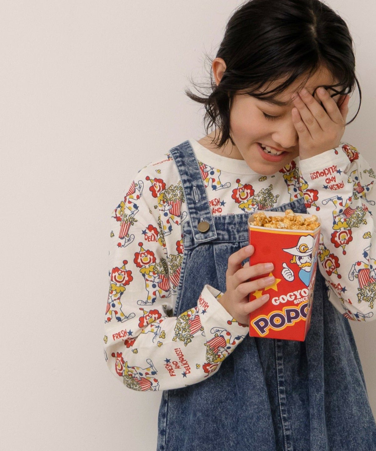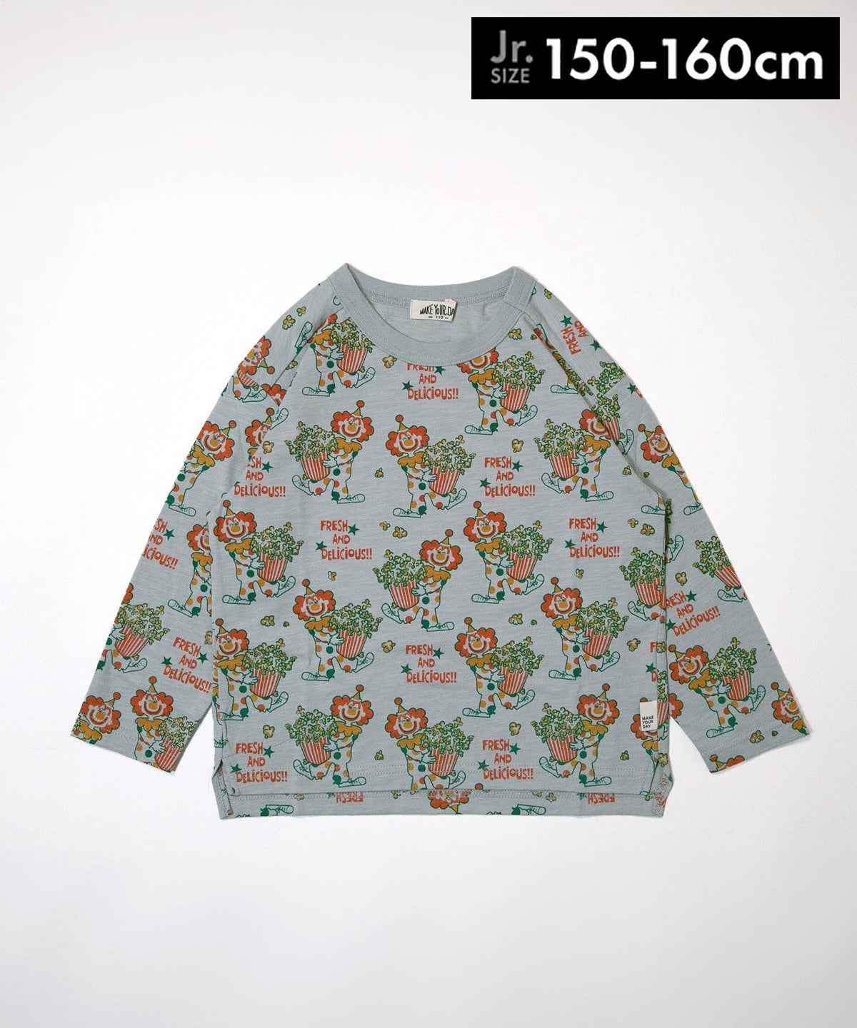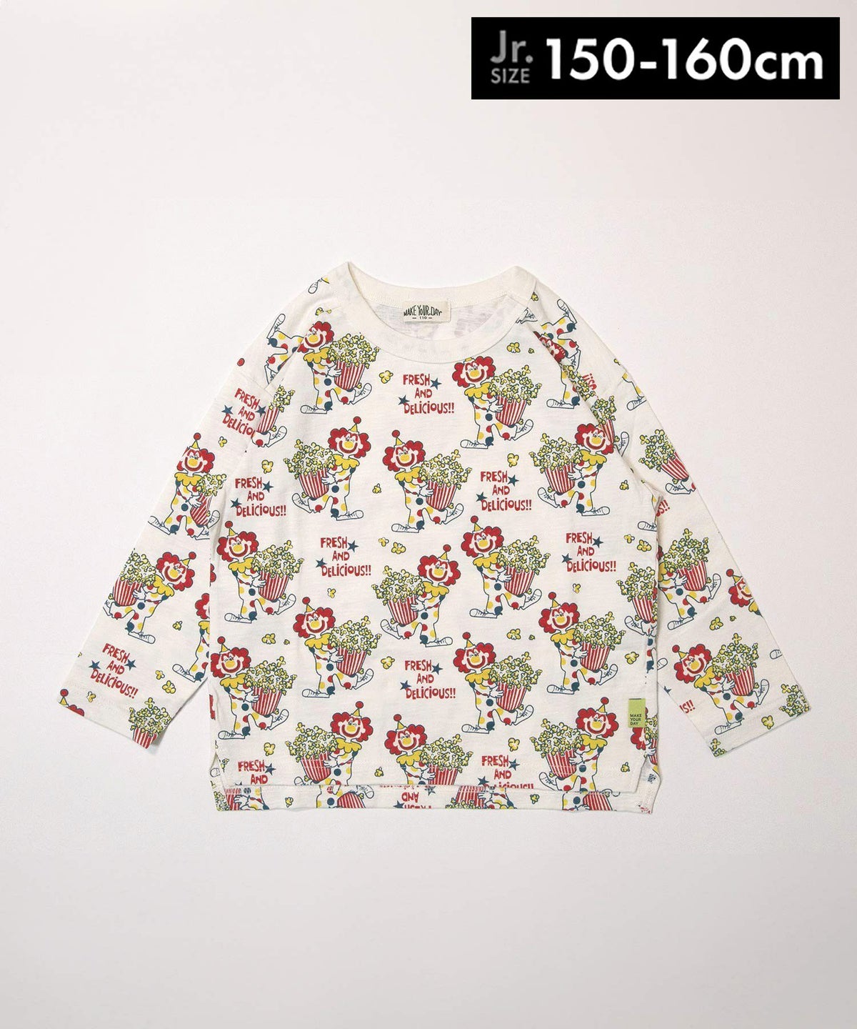 ピエロとポップコーン総柄長袖Tシャツ■150.160cm