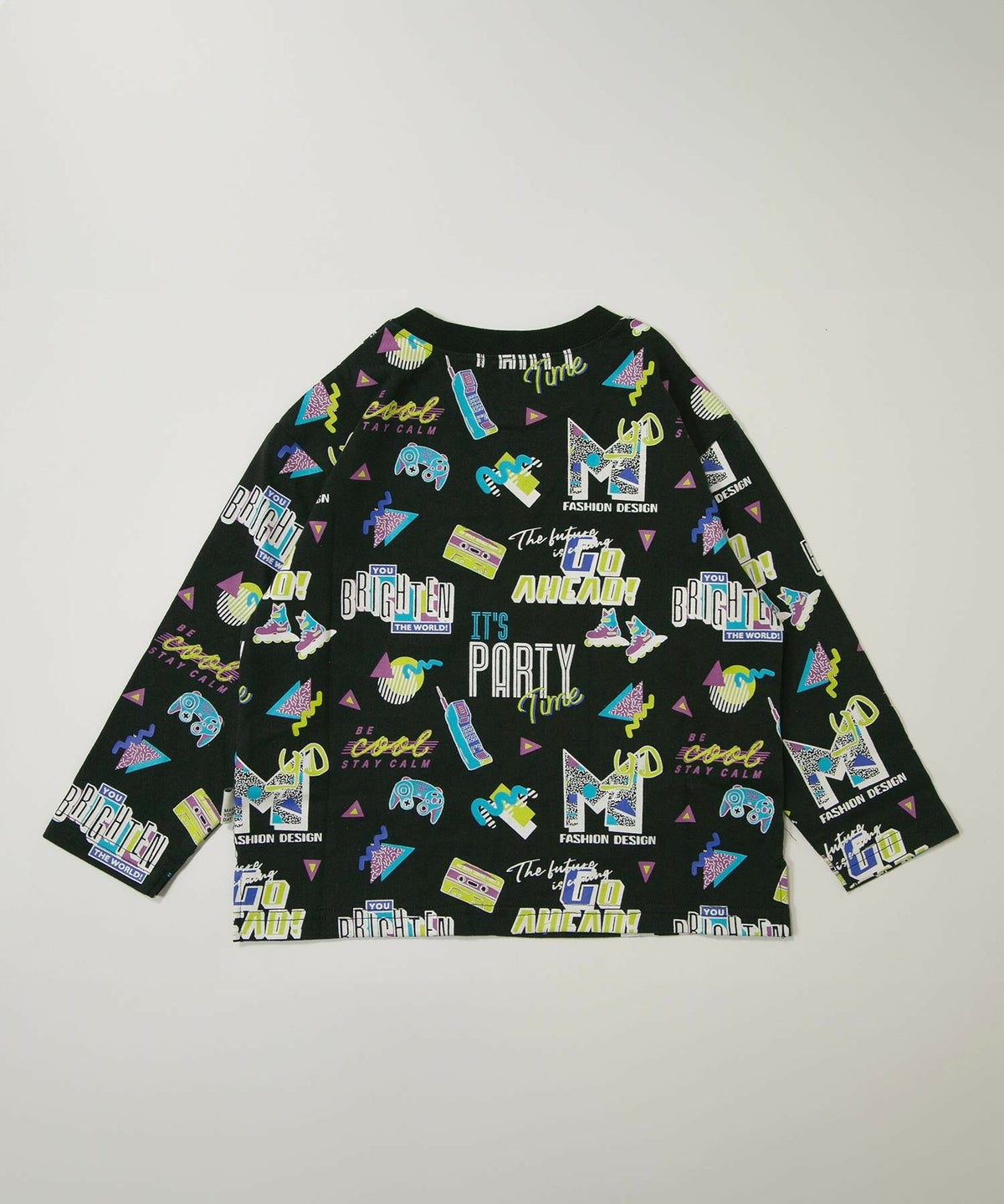 レトロなネオンサイン総柄長袖Tシャツ■150.160cm