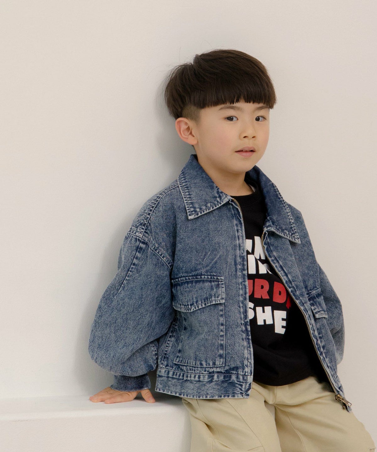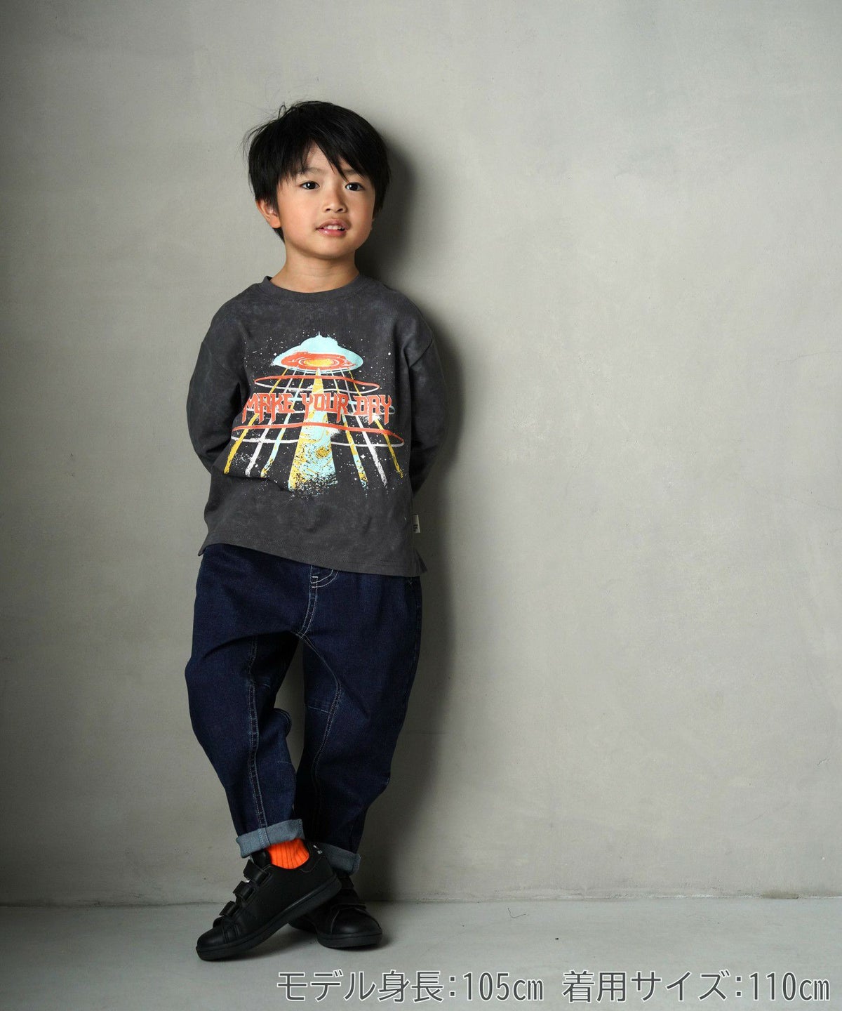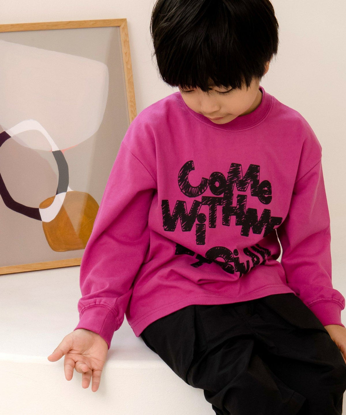 手書きロゴ袖リブ長袖Tシャツ■80~140cm