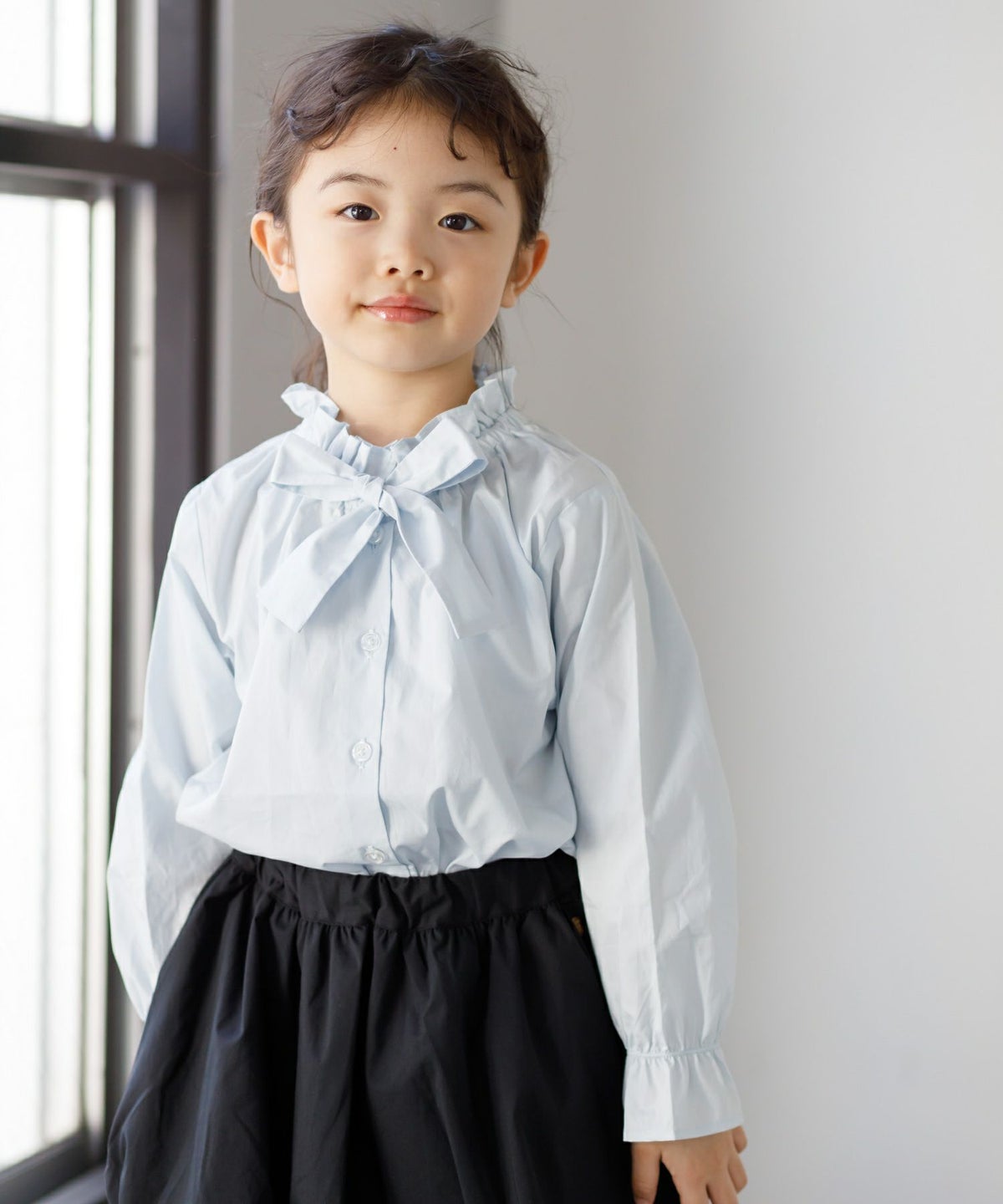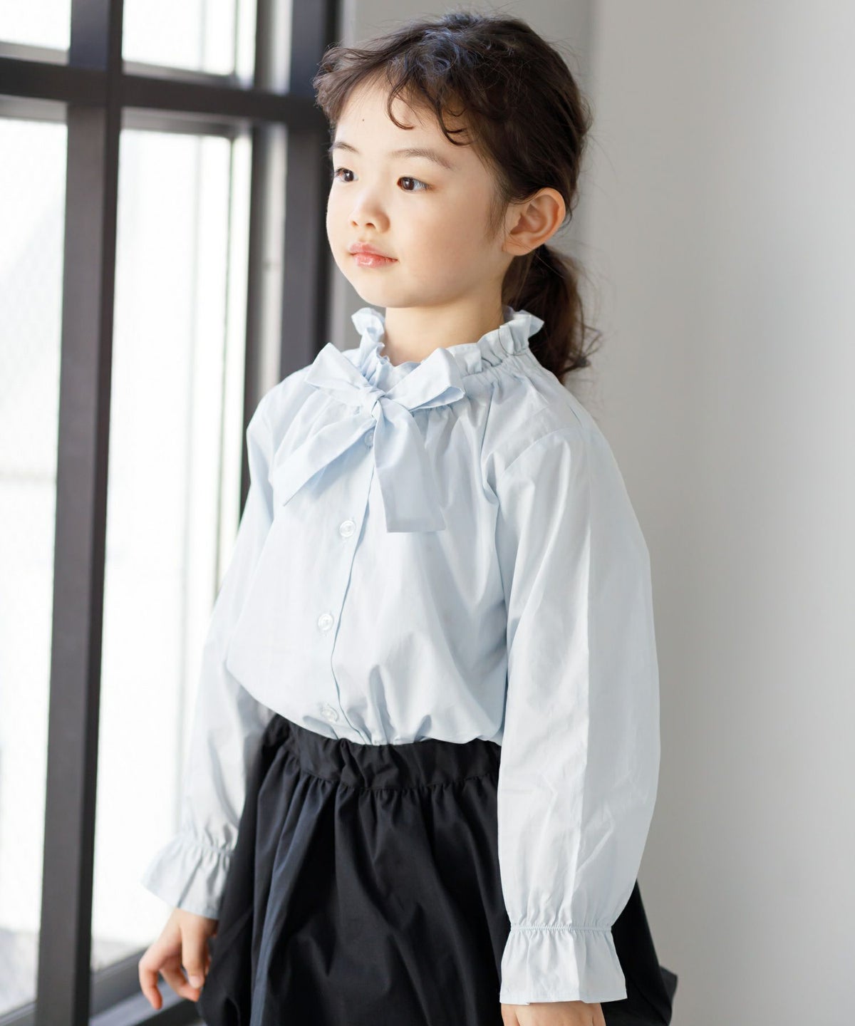 【セール】異素材フリルカラー長袖Tシャツ■80~140cm