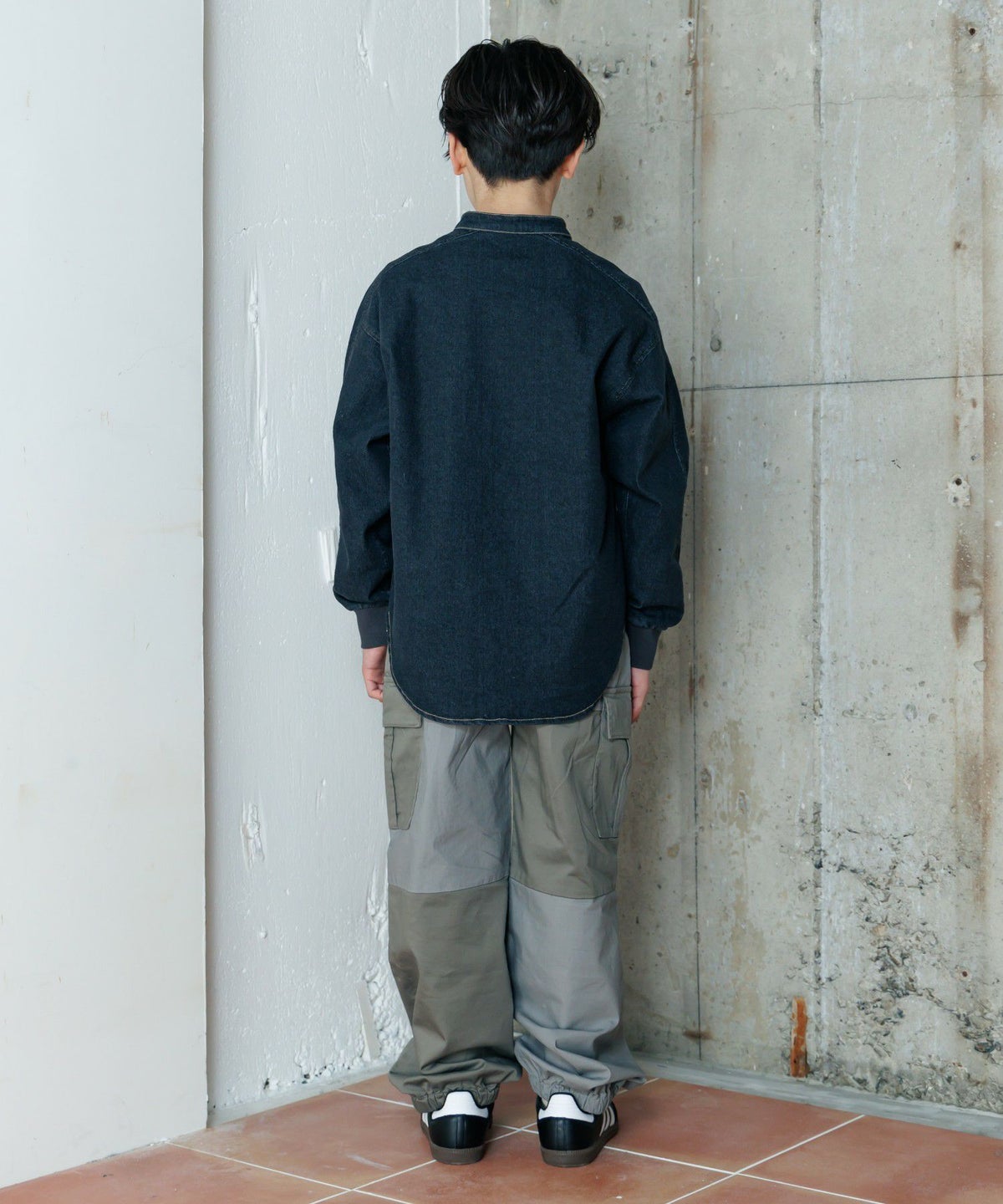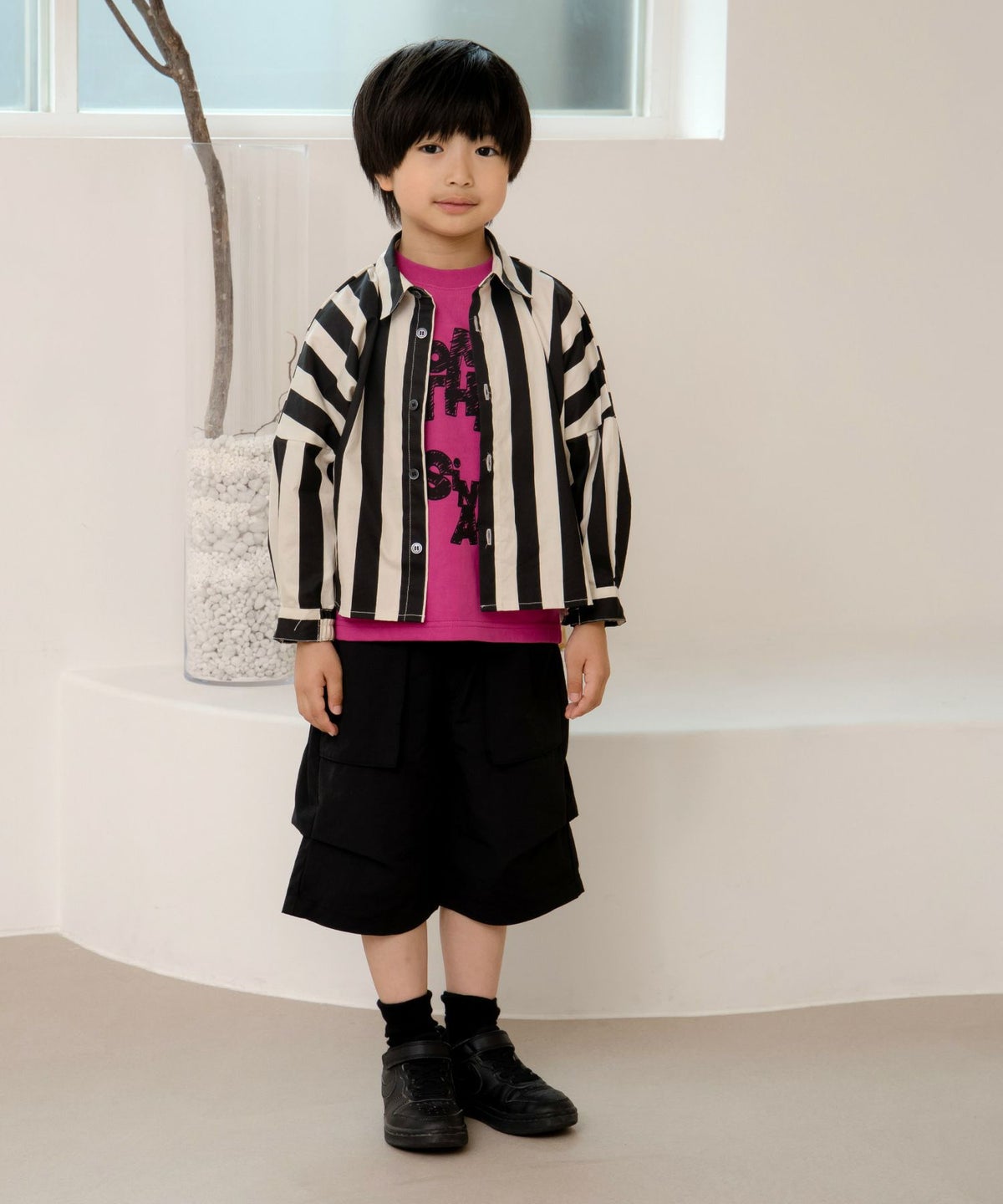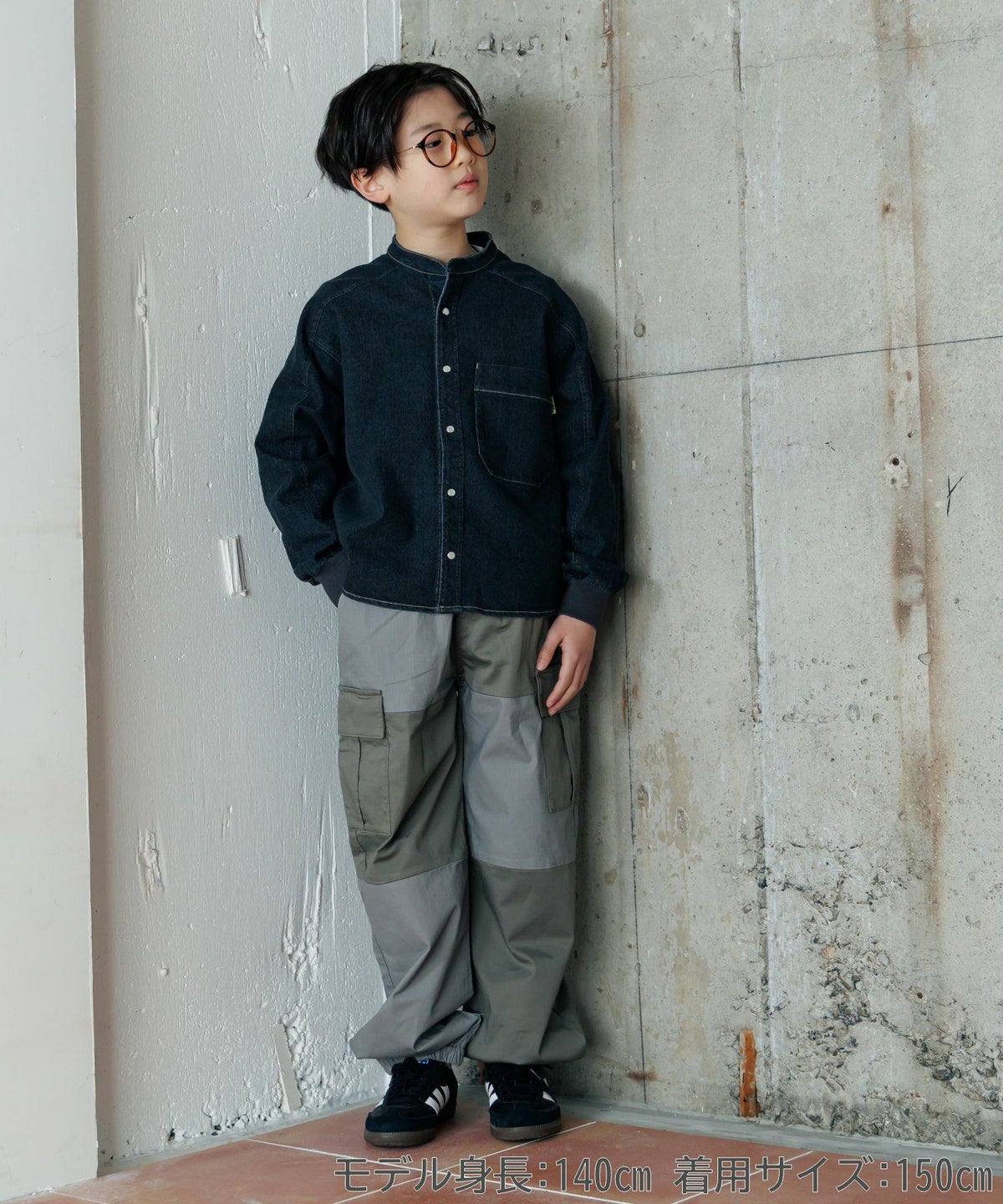 【セール】無地とストライプのバンドカラーシャツ■80~140cm