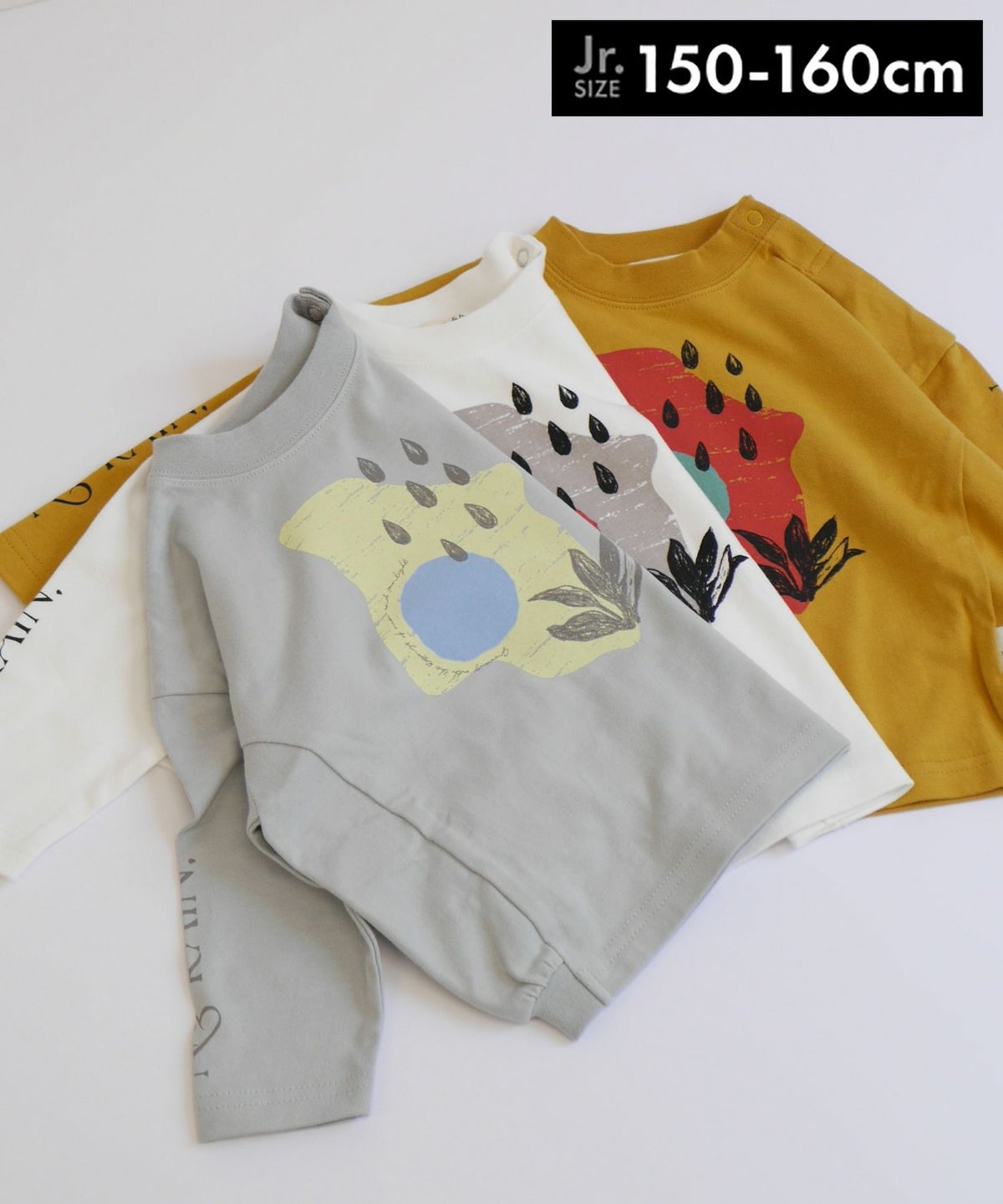 抽象レイン柄変形長袖Tシャツ■150.160cm