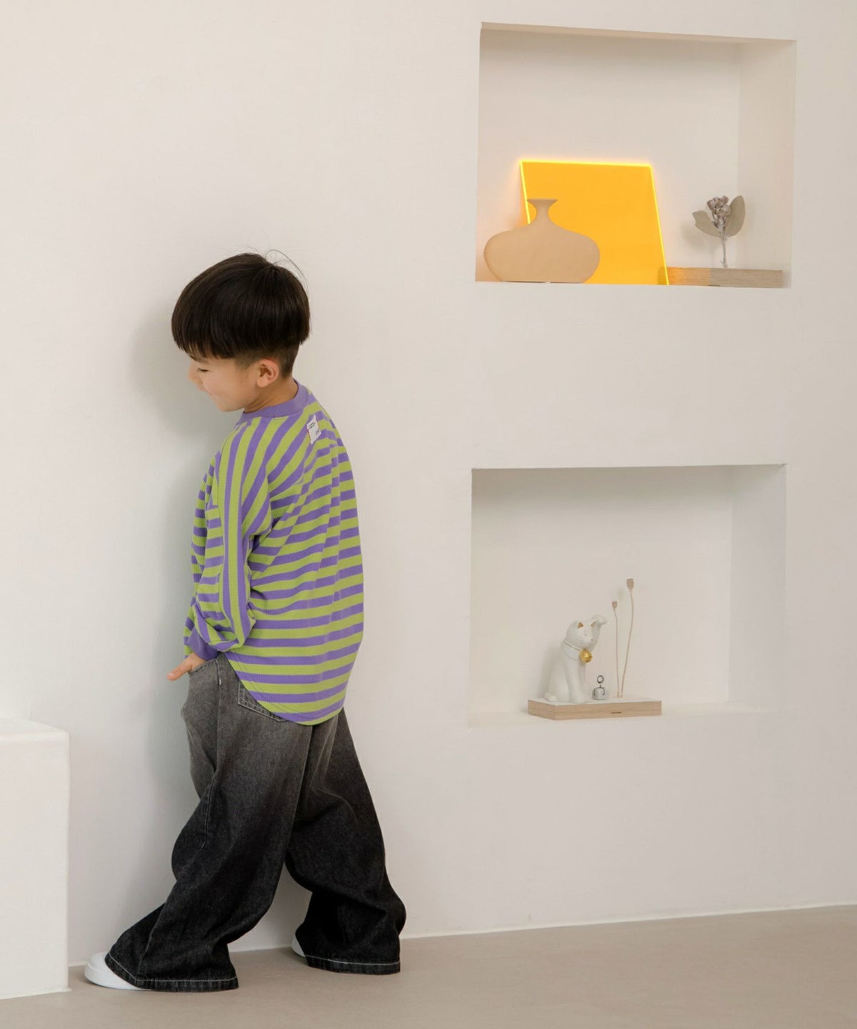 【セール】前後着用できるボーダー長袖Tシャツ■80~140cm