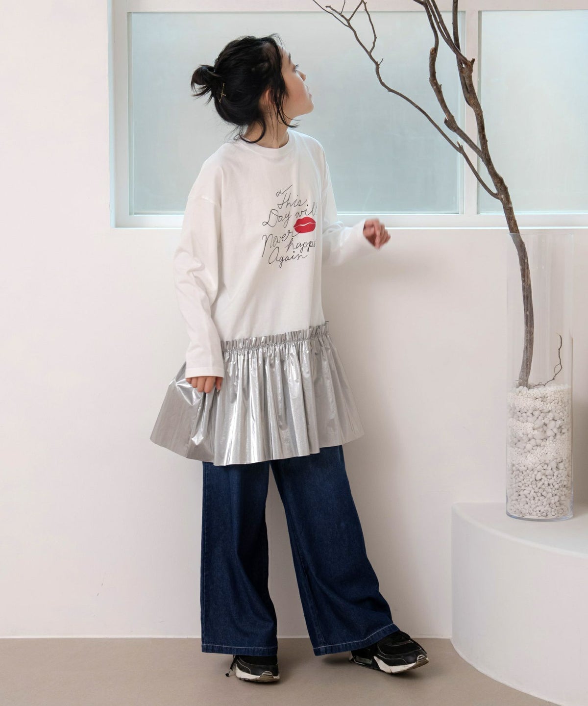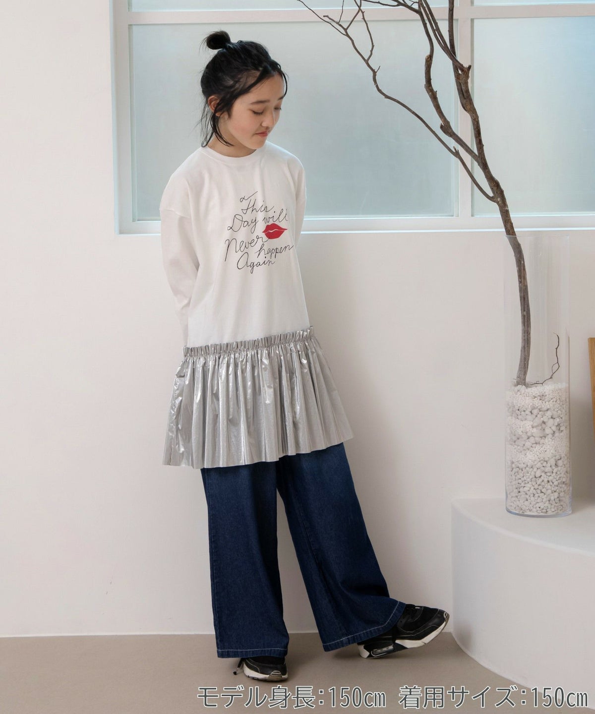 【セール】異素材フリルカラー長袖Tシャツ■150.160cm