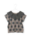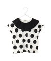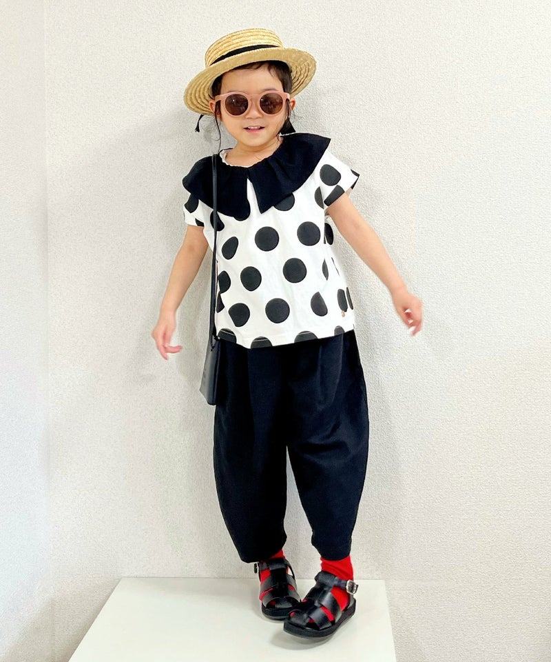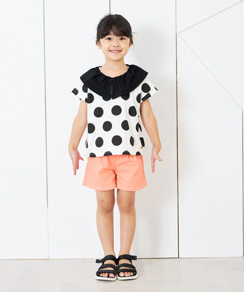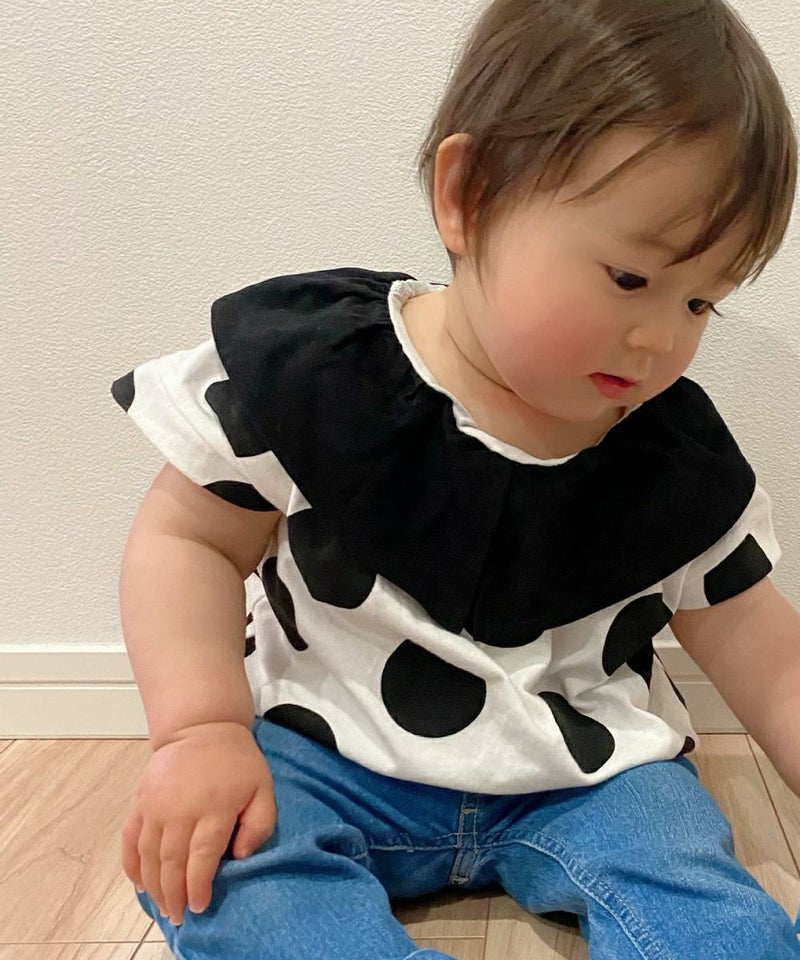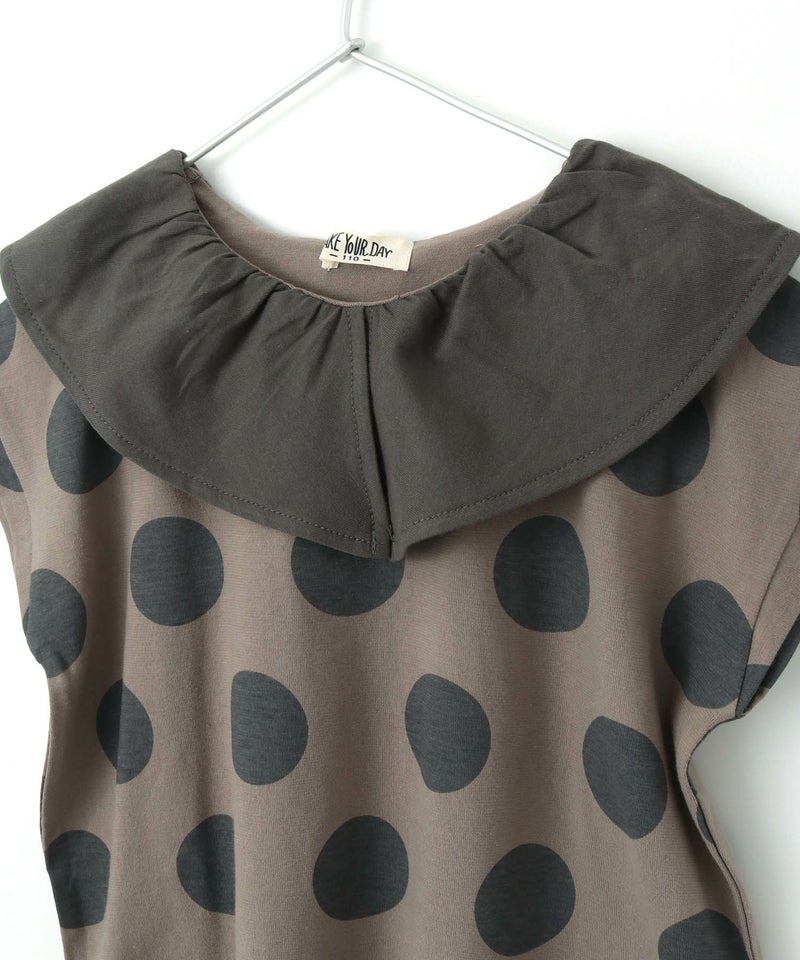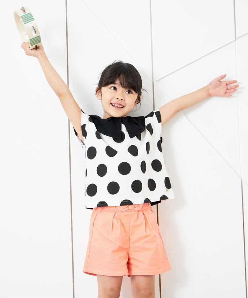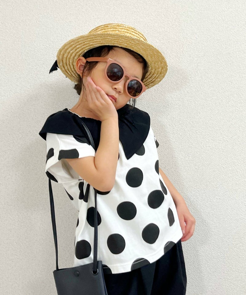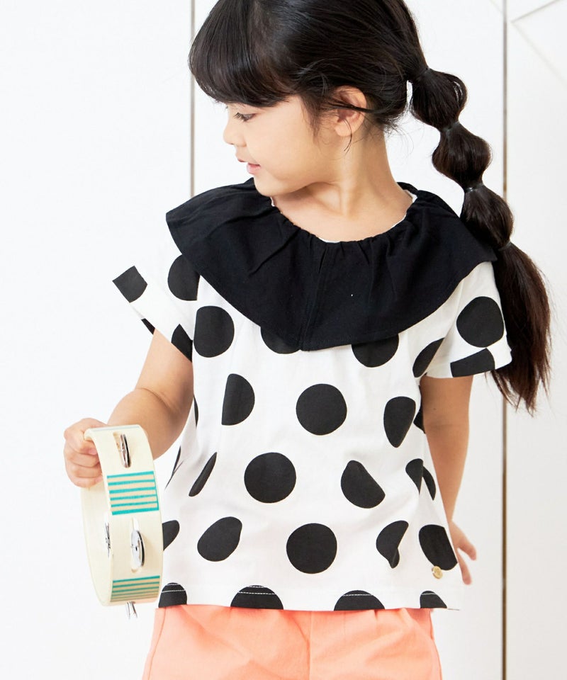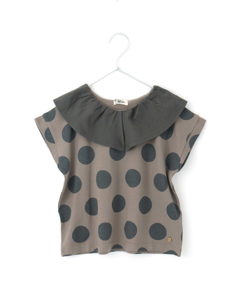 大き目の衿と大き目のドットのバランスがかわいいTシャツ。
