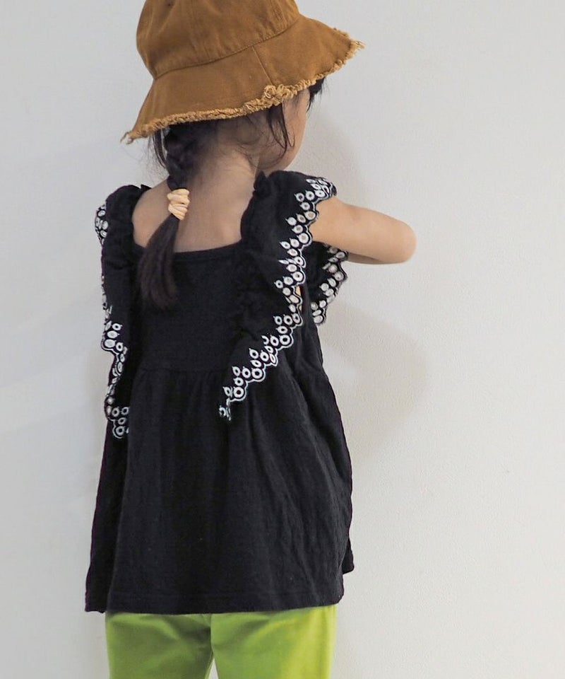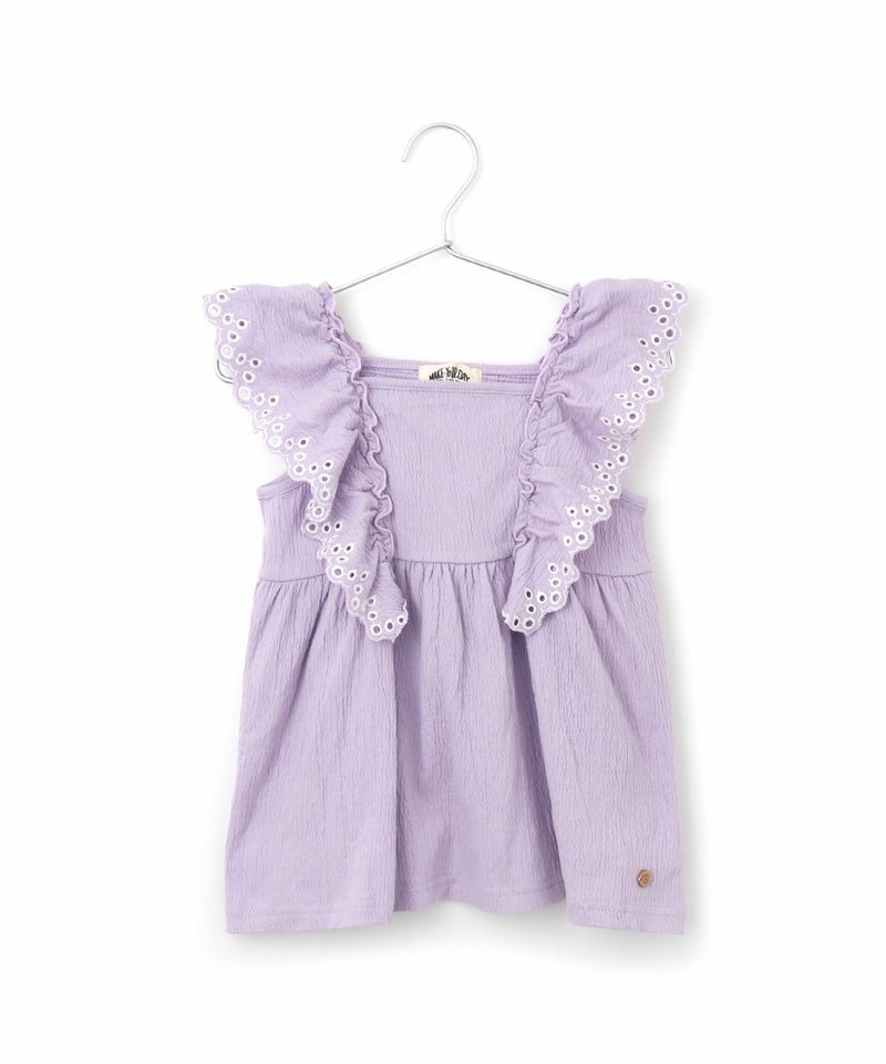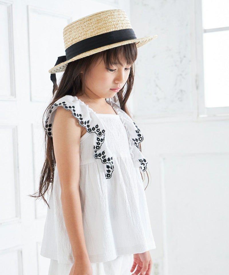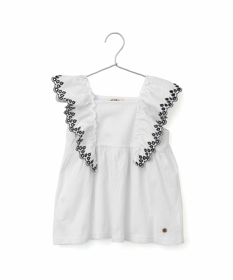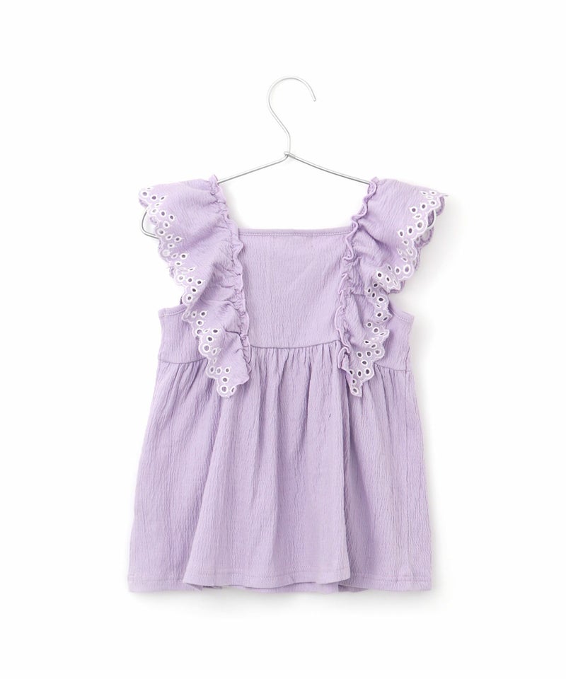 アイレット刺繍の繊細なレースが女の子のかわいらしさをさらに彩ります。