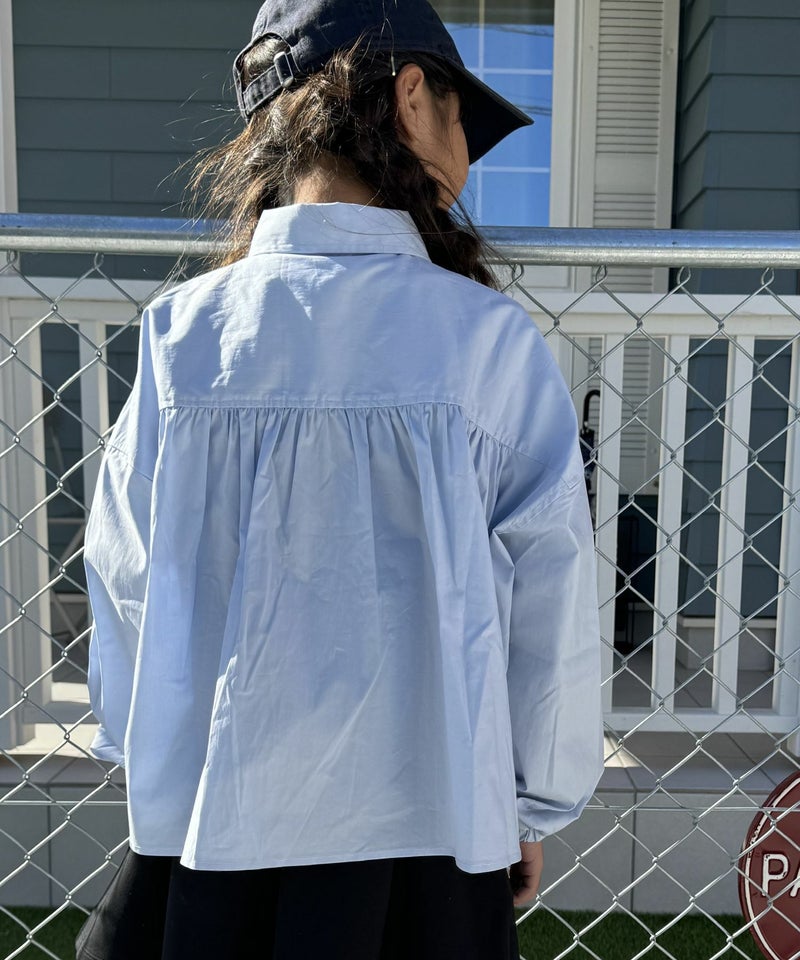 後ろ身頃にたっぷりのギャザーが入ったブラウス。