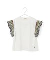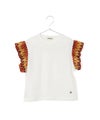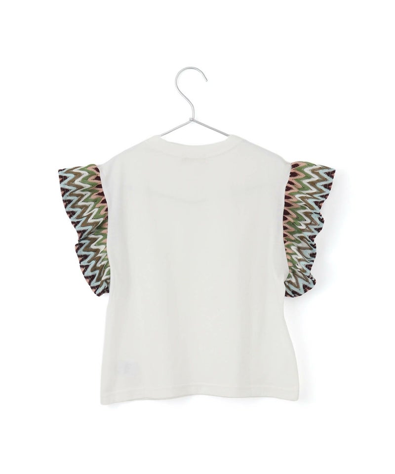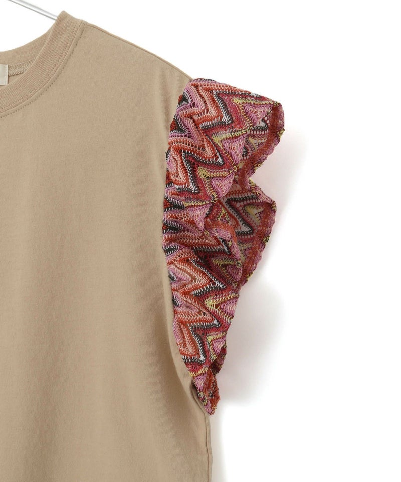 透け感のあるカラフルなフリルがポイントのTシャツ。