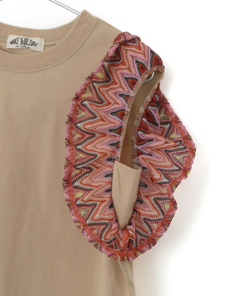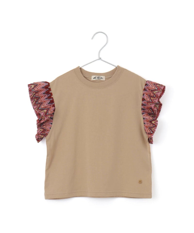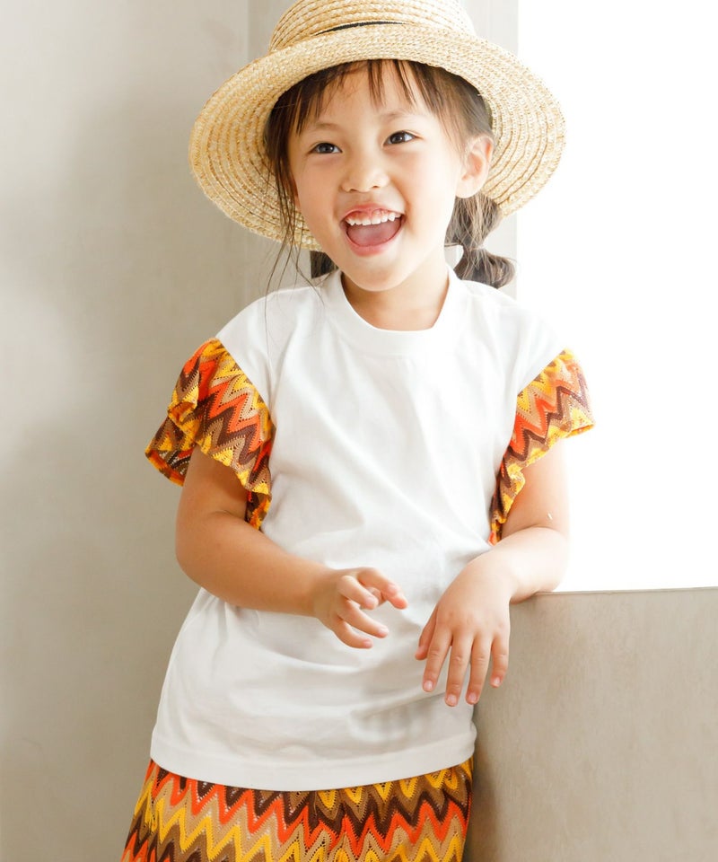 【セール】セットアップできる異素材フリル半袖Tシャツ■90~140cm