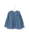 おっきな衿がアクセントになったトレンドのデコラティブなデザインのブラウス。