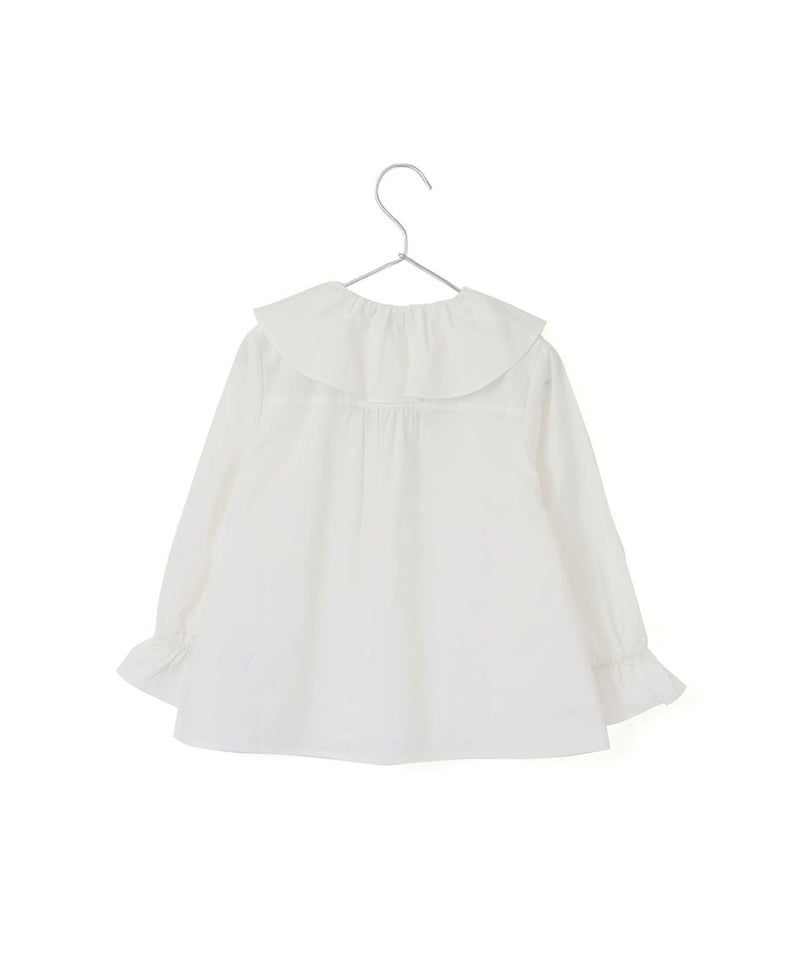 おっきな衿がアクセントになったトレンドのデコラティブなデザインのブラウス。