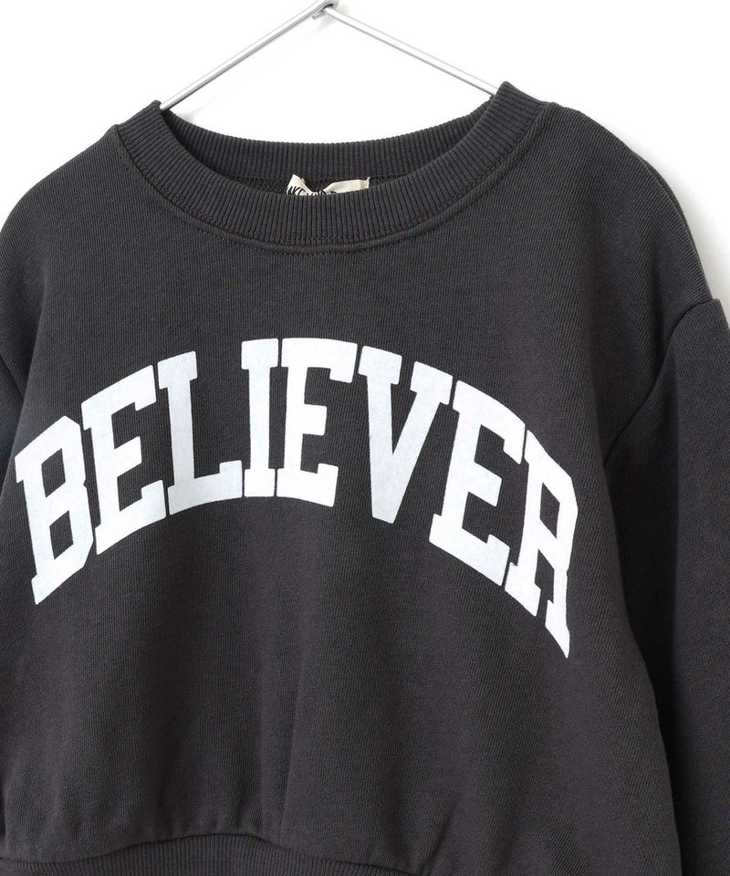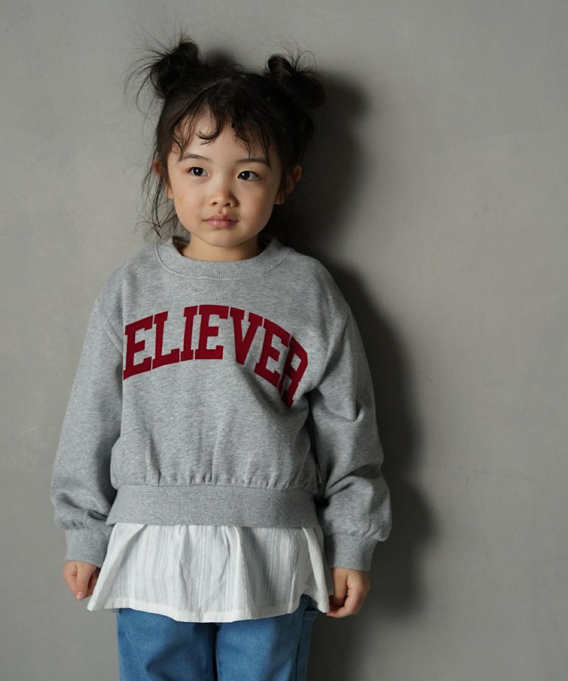 【セール】フリル付きBELIEVERロゴファミリー裏毛トレーナー■80~140cm