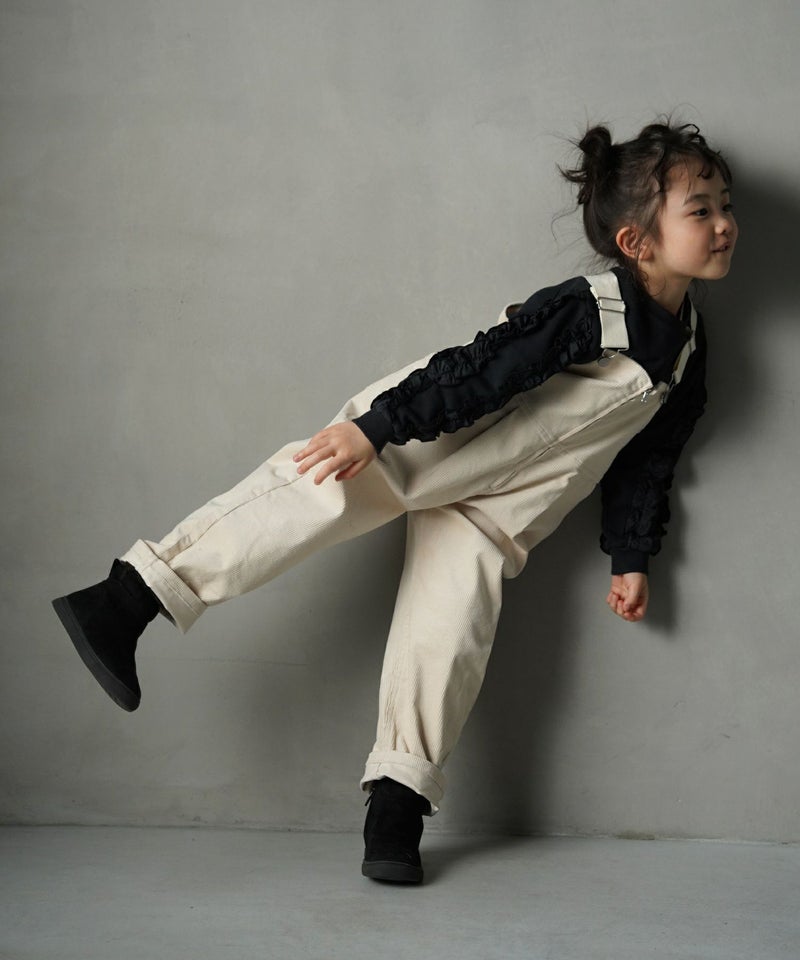 ベーシックな無地だからこそお袖のフリルが印象的。だけど同色のフリルだから主張しすぎずママも着やすいバランスです。