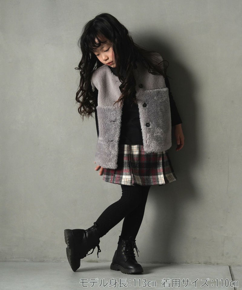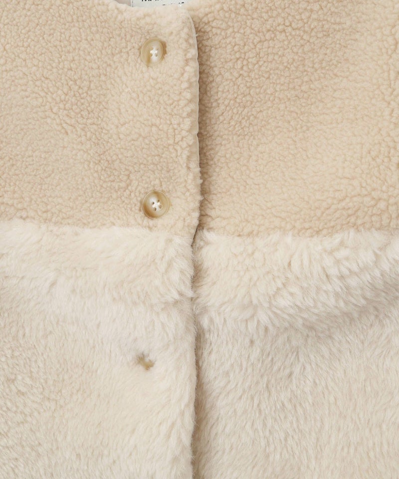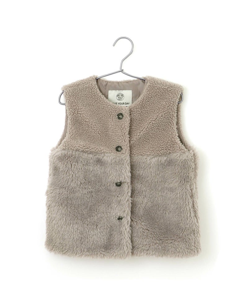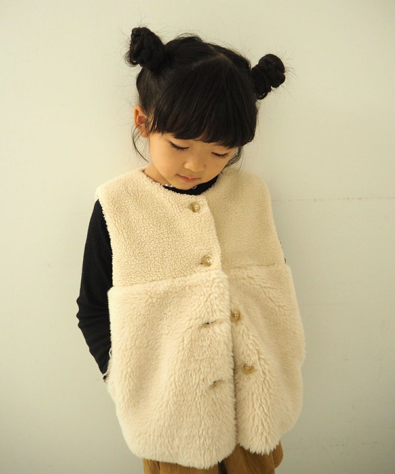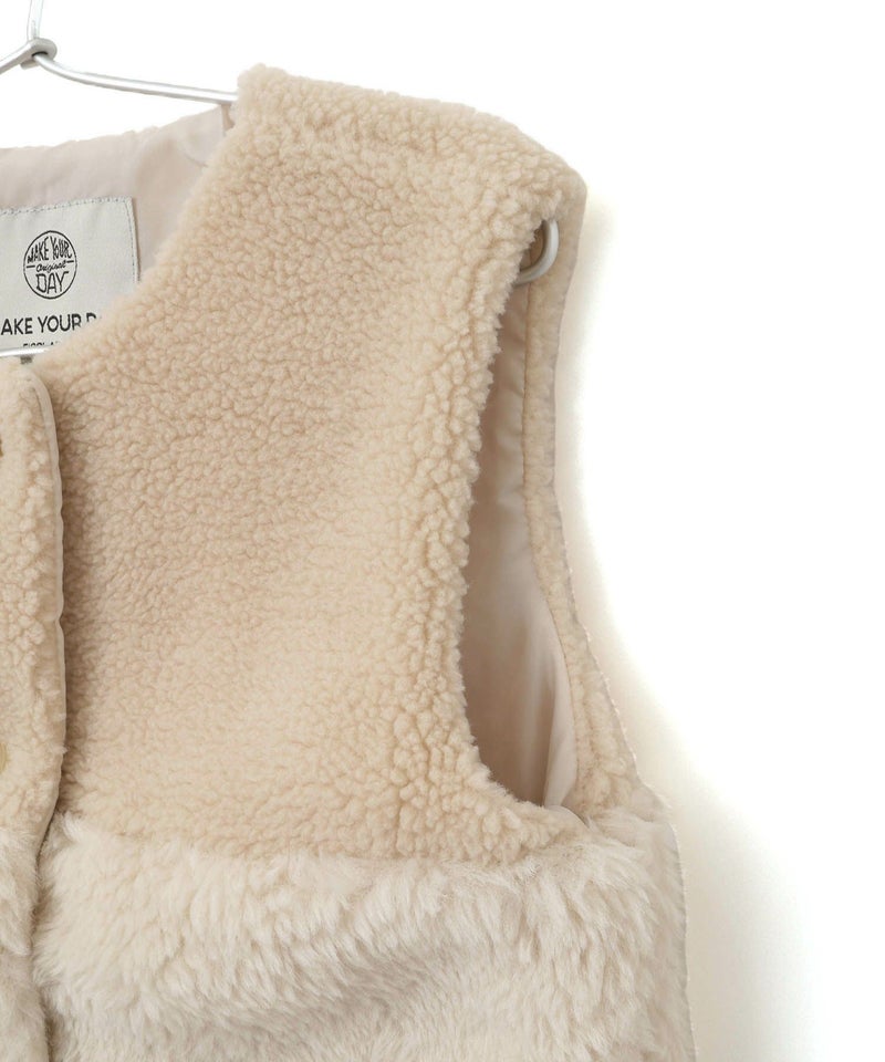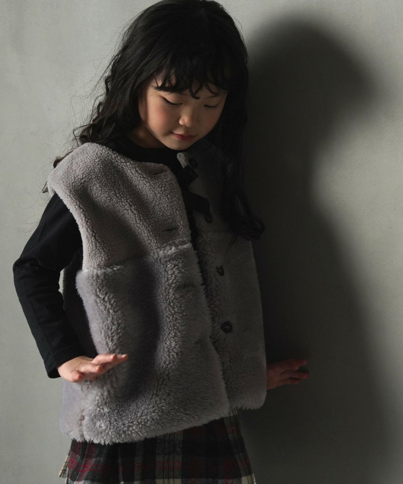 ボリュームの異なるボアを組み合わせた、女の子のコーデの幅をぐっと広げるボアベスト。