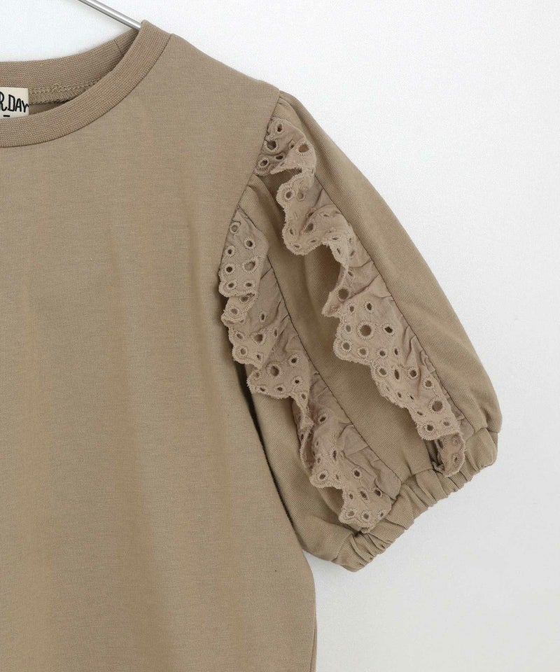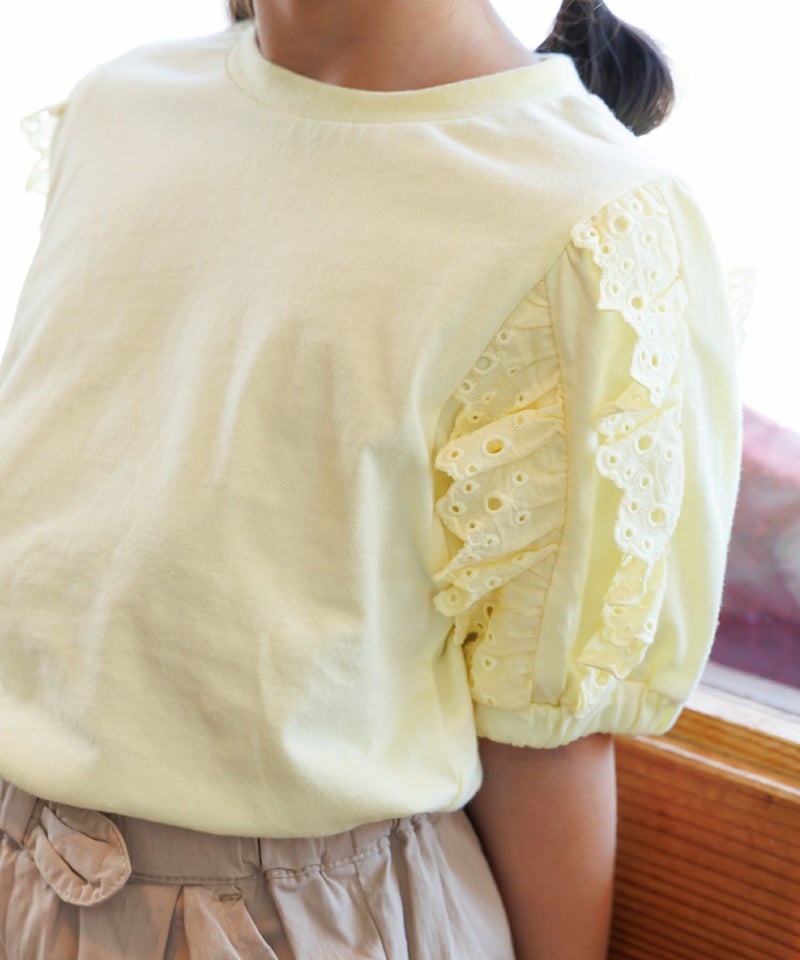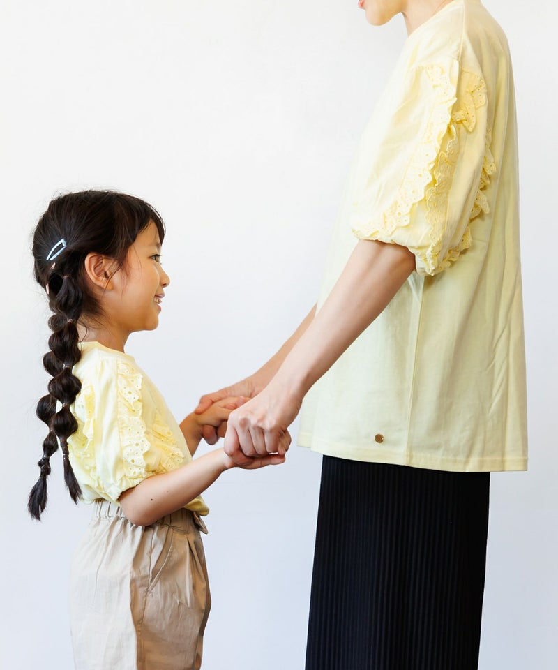 【セール】ママとおそろい 袖レース半袖Tシャツ■80~140cm