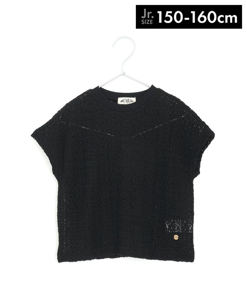 【セール】ママとおそろい フラワーレースフレンチ袖Tシャツ■150.160cm