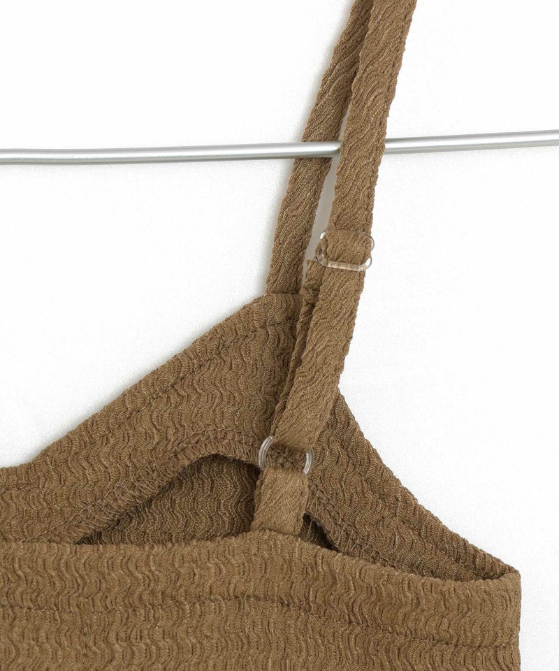 凹凸感のあるシャーリング素材のキャミソール。