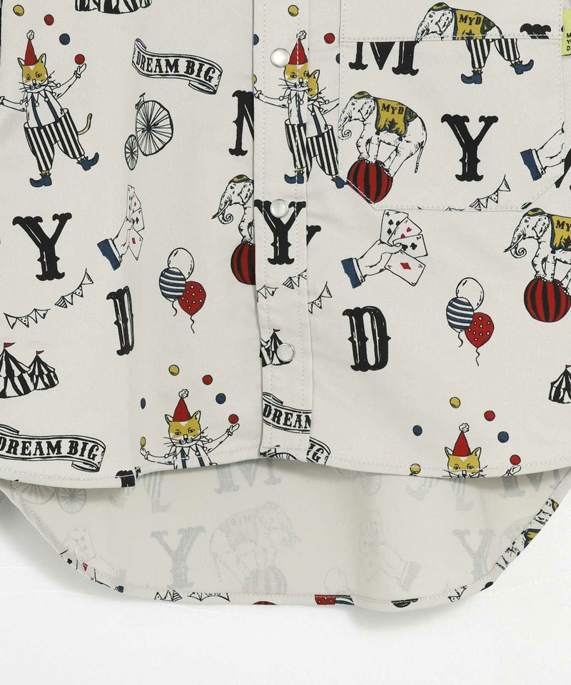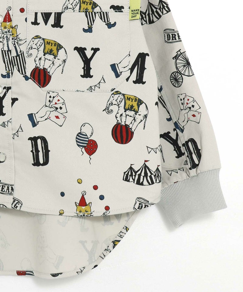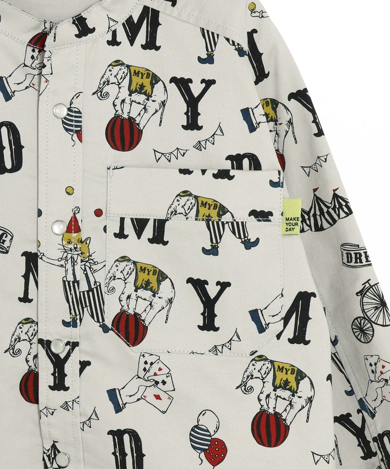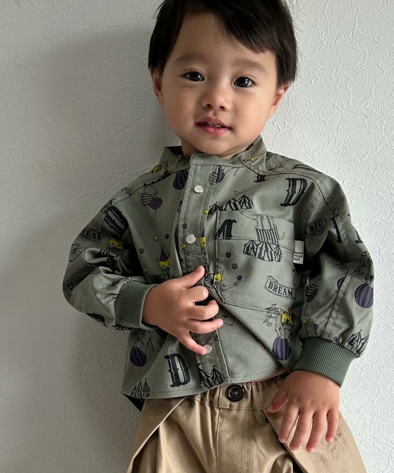 総柄バンドカラー長袖シャツ■80~140cm