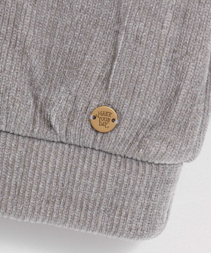 キラキラのラメ糸を引き揃えたニットのように見えて、厳密にはニットではないのでニットほど伸びてしまったり、ひっかけて糸が飛び出してきたり、がないプルオーバー。