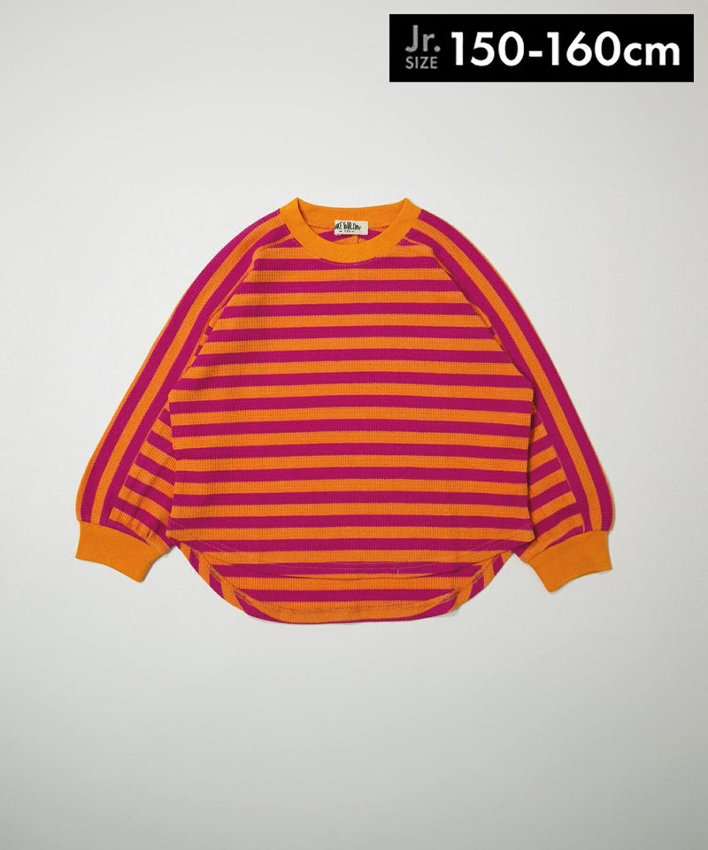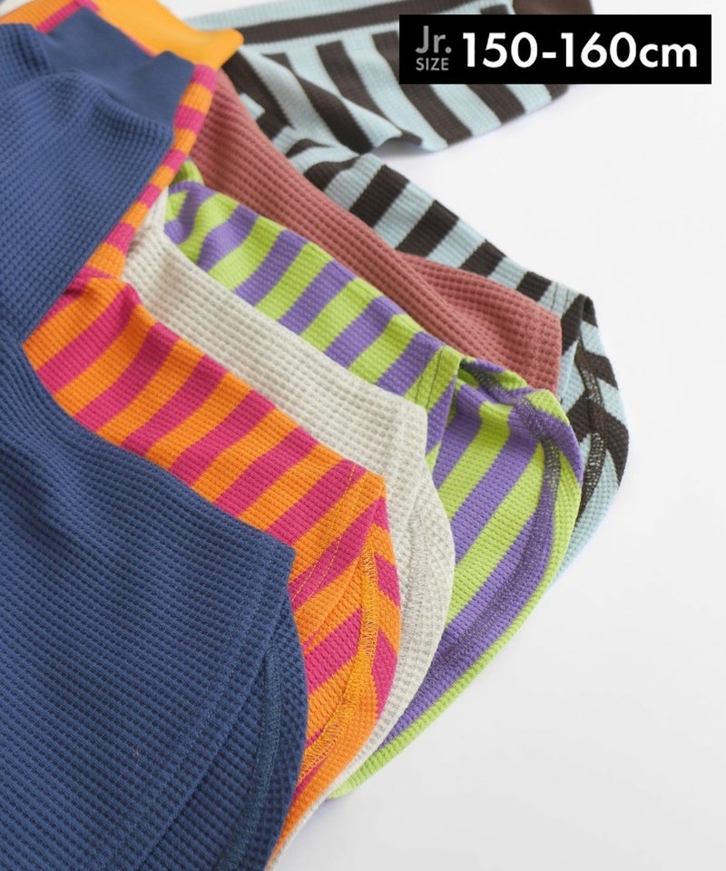 無地とボーダー裾ラウンドサーマル長袖Tシャツ■150.160cm