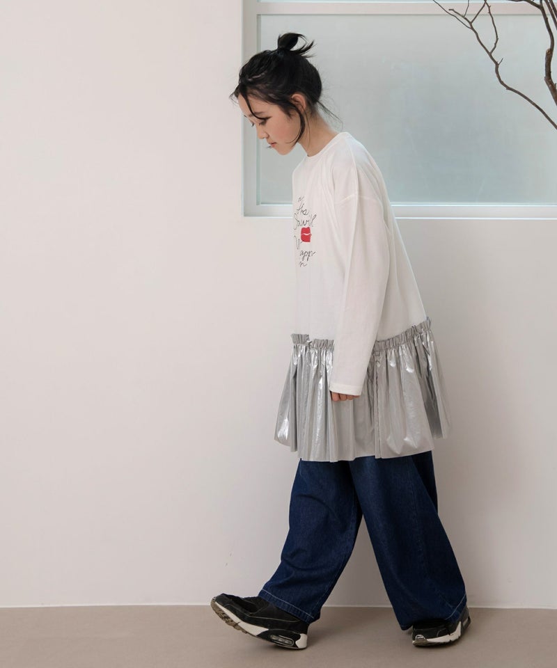 オフホワイト●本体)綿100% リブ部分)綿95% ポリウレタン5% 裾フリル・切替部分)ナイロン50% ポリウレタン50%