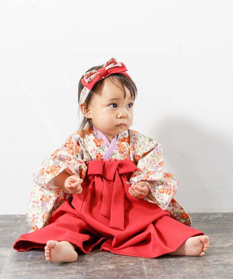上下別なのでお着替えさせやすく、気軽に和装を楽しんでいただける袴セットです。