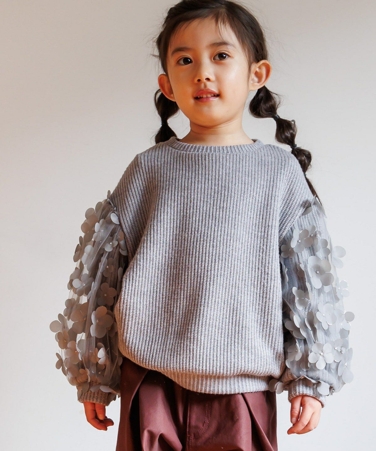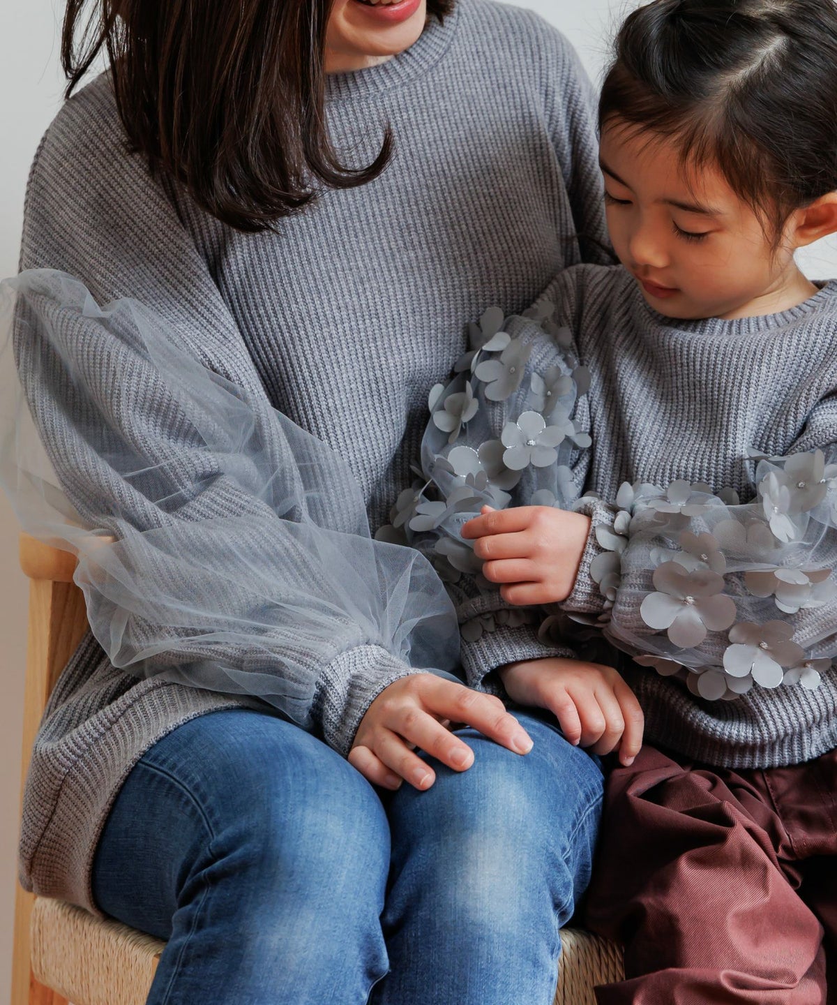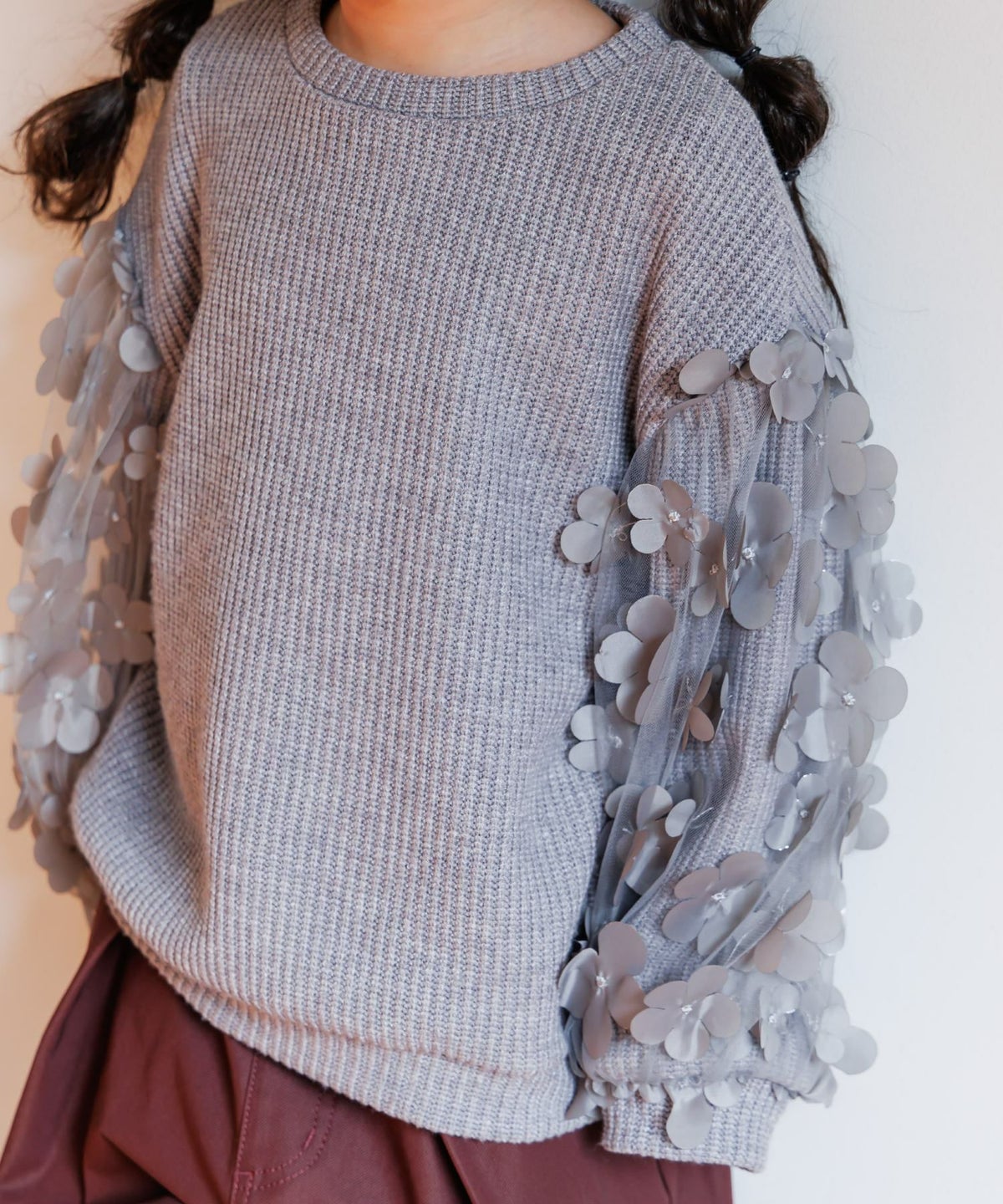 【セール】ママとおそろいシアーフラワー袖プルオーバー■80~140cm