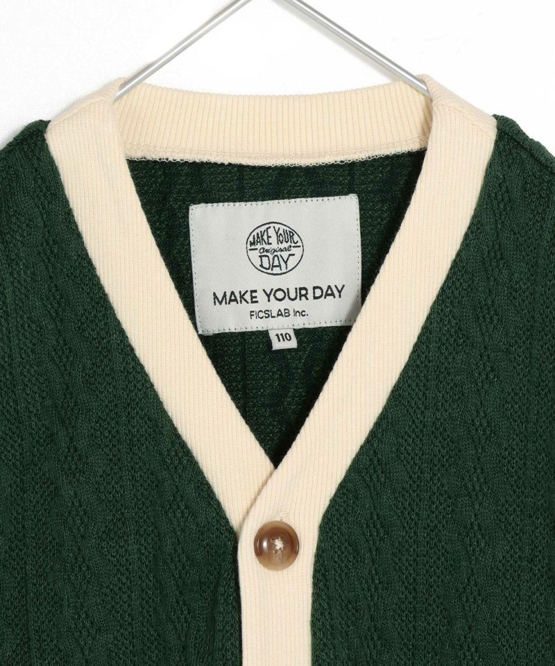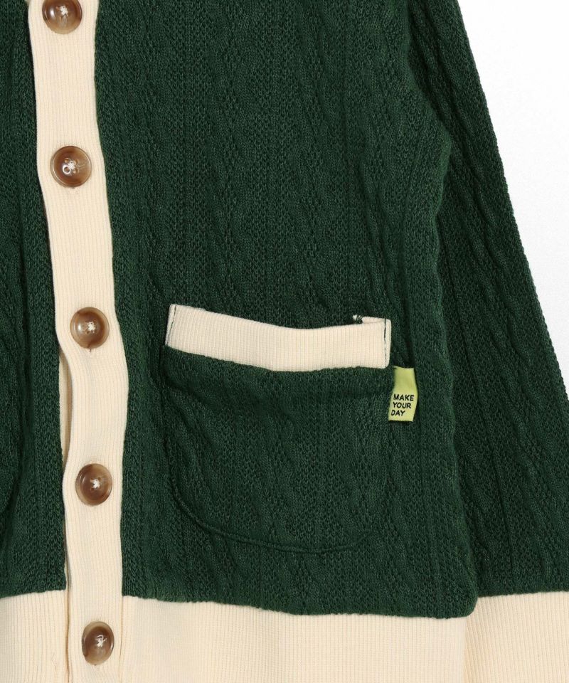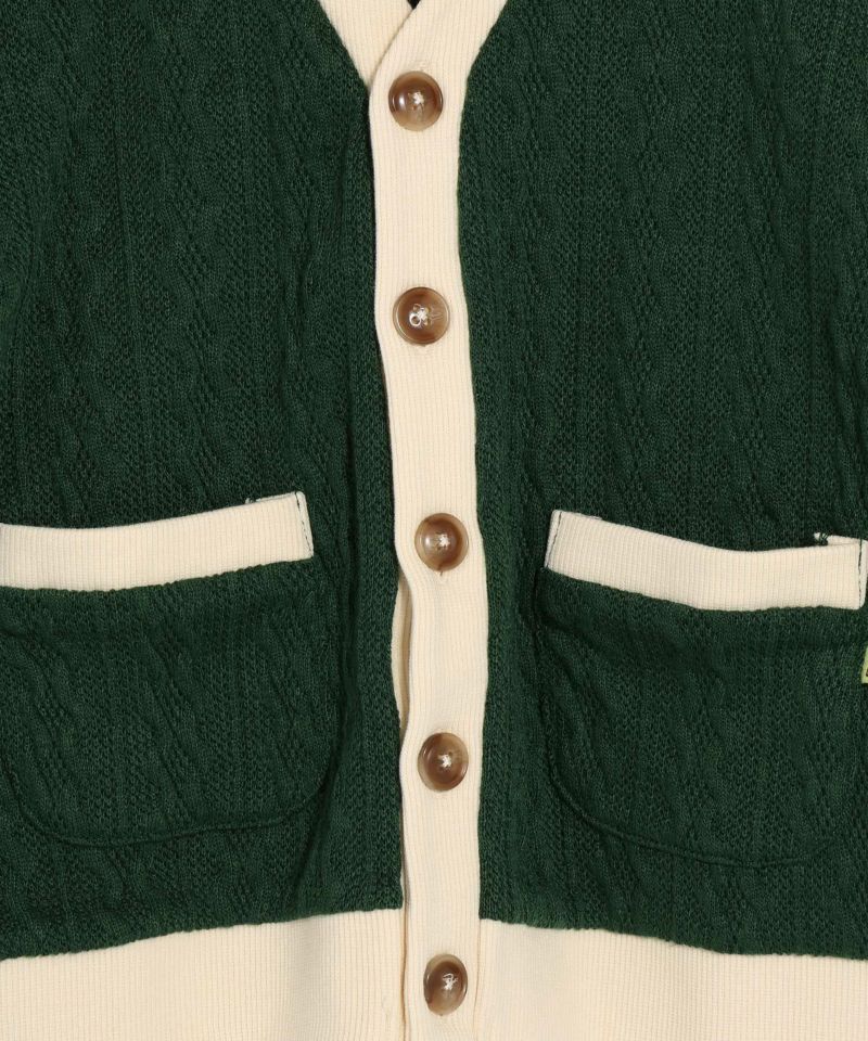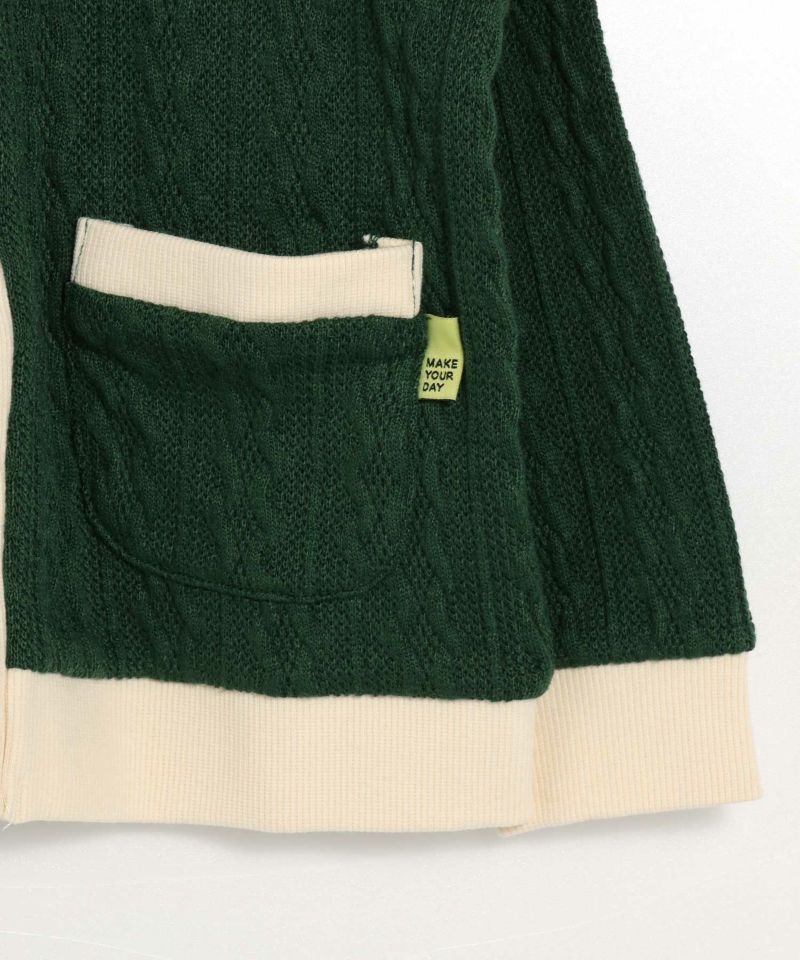 ケーブル模様と落ちついた組み合わせのバイカラーが、”ええとこの子”感あふれています。