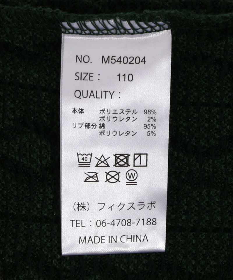 本体)ポリエステル98% ポリウレタン2% リブ部分)綿95% ポリウレタン5%